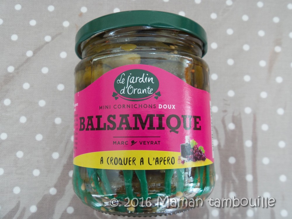 - un pot de mini cornichons doux balsamique Le jardin d’Orante. Prix: 1€95