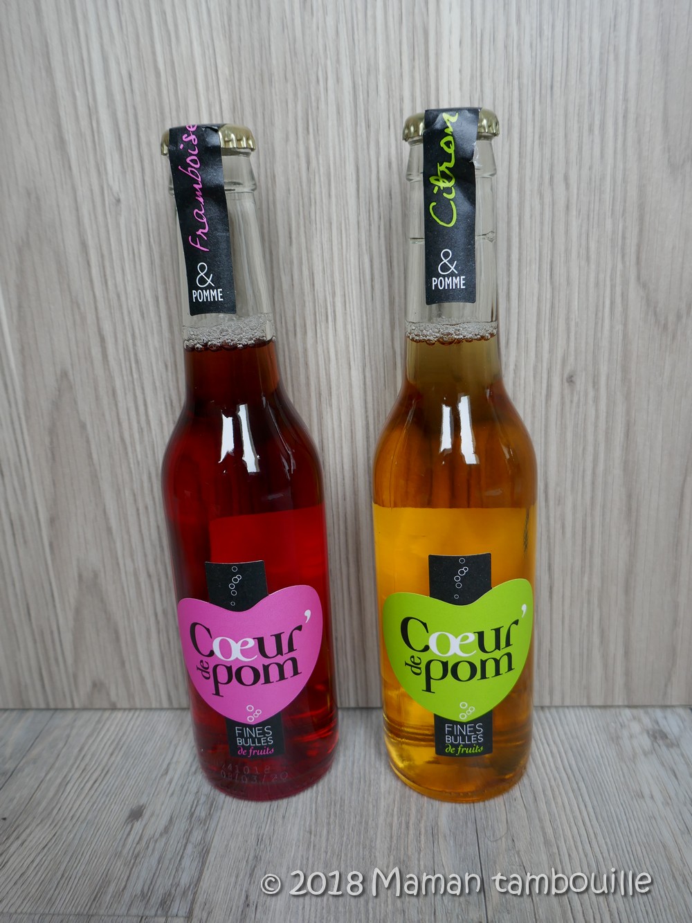 • des bouteilles Coeur de pom’ framboise et citron. Prix: 3€80 pour 3 bouteilles de 27,5cl