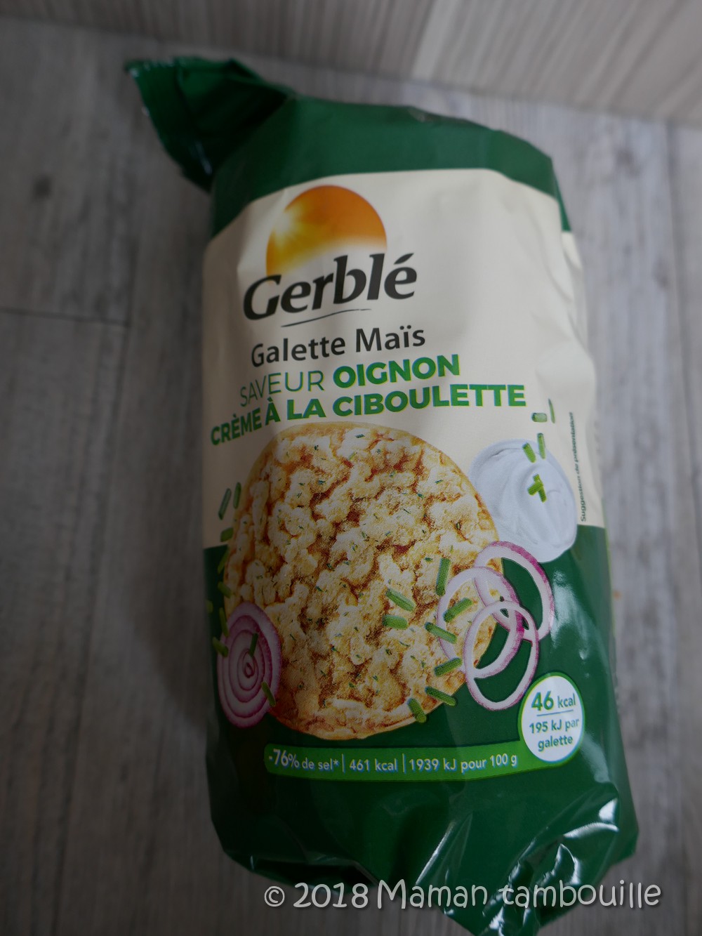 • des galettes de maïs Gerblé saveur oignon crème à la ciboulette. Prix: 1€89