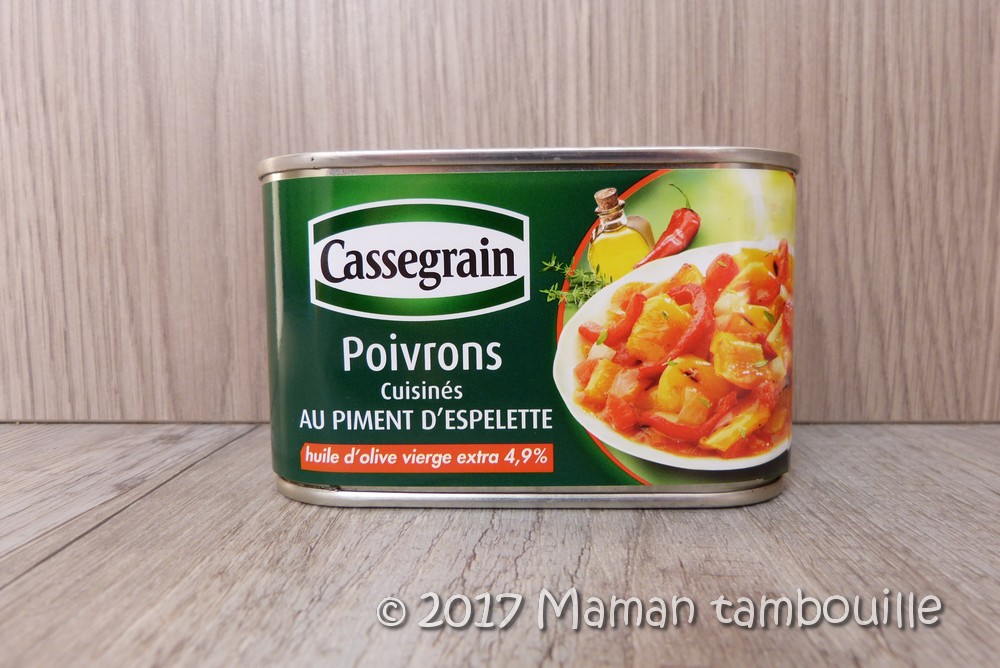 - Le produit du mois: une boite de poivrons cuisinés au piment d’Espelette Cassegrain. Prix: 3€50