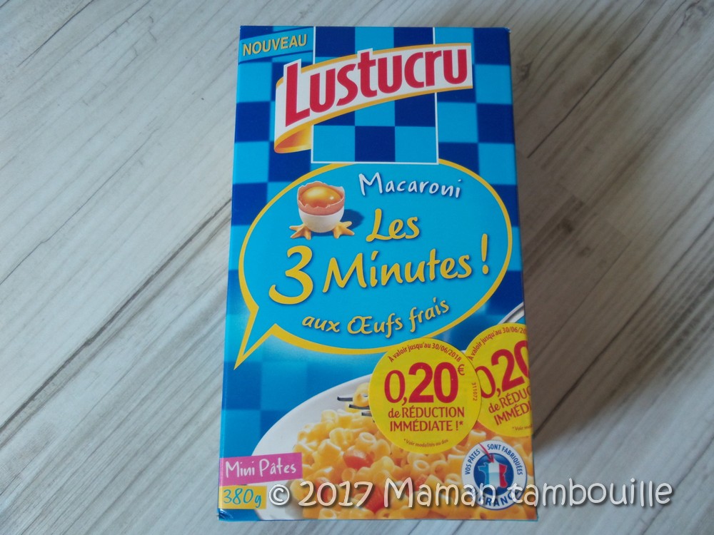 - des pâtes Lustucru cuites en 3 min. Prix: 1€29