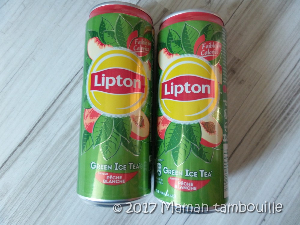 - 2 cannettes de thé à la pêche Lipton. Prix: 0,60€ l’unité
