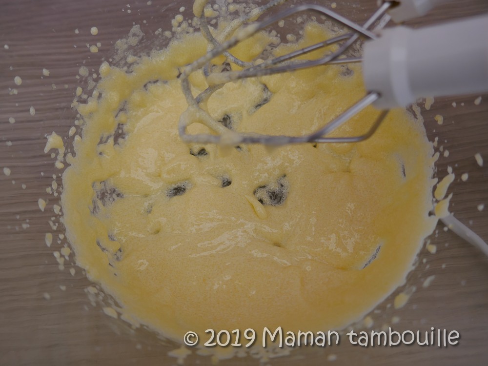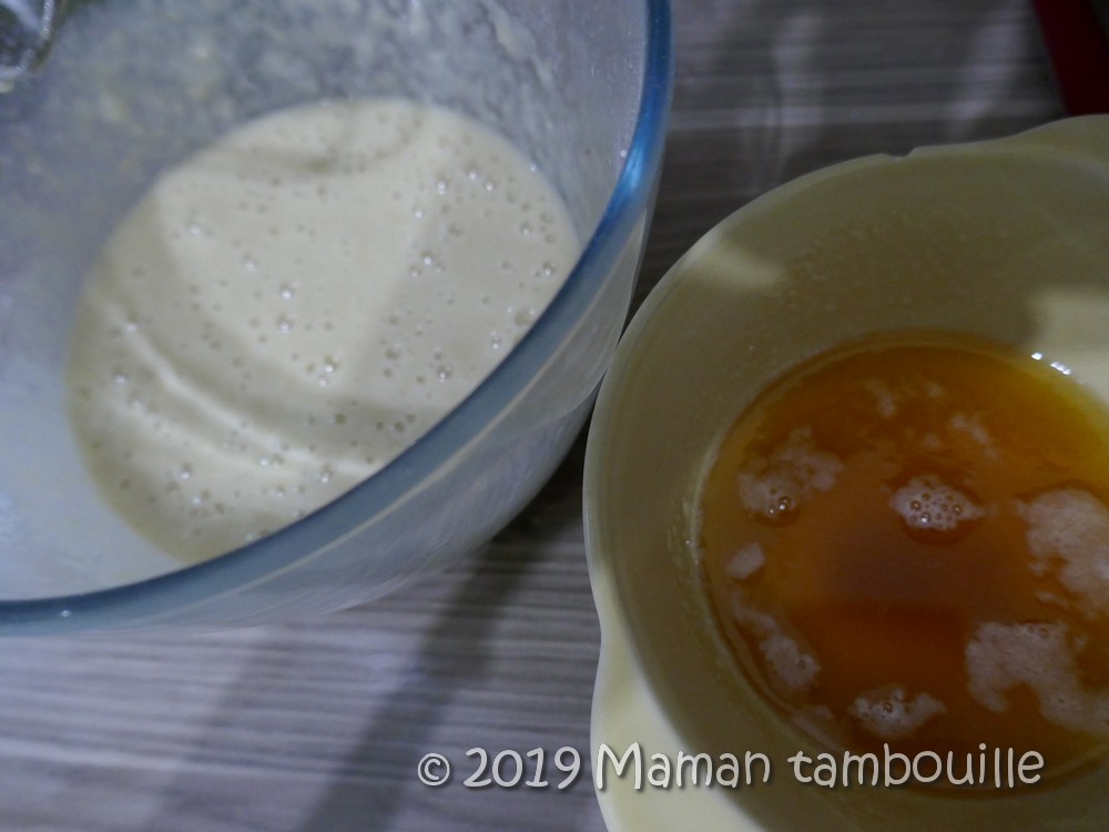 Au bout d’une heure, blanchir le jaune d’oeuf avec 45g de sucre.