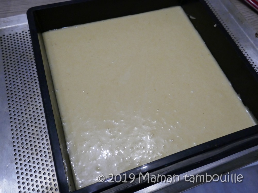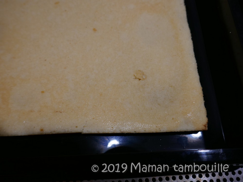 Poser du papier cuisson le long du biscuit côté « vide » (parce qu’on va couler l’abricot dessus et c’est pour éviter que ça colle sur les côtés 😉 ).