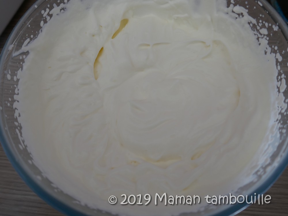 Ajouter les blancs d’oeuf et fouetter le mélange.