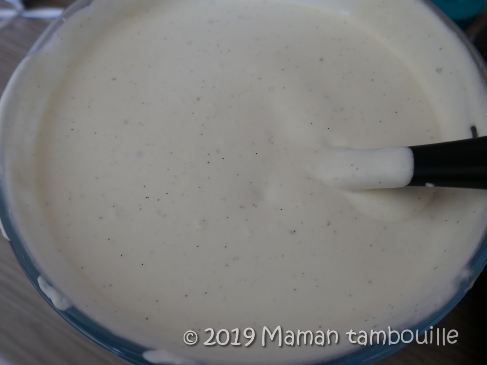Verser la crème anglaise dans la chantilly et incorporer délicatement à l’aide d’une spatule.