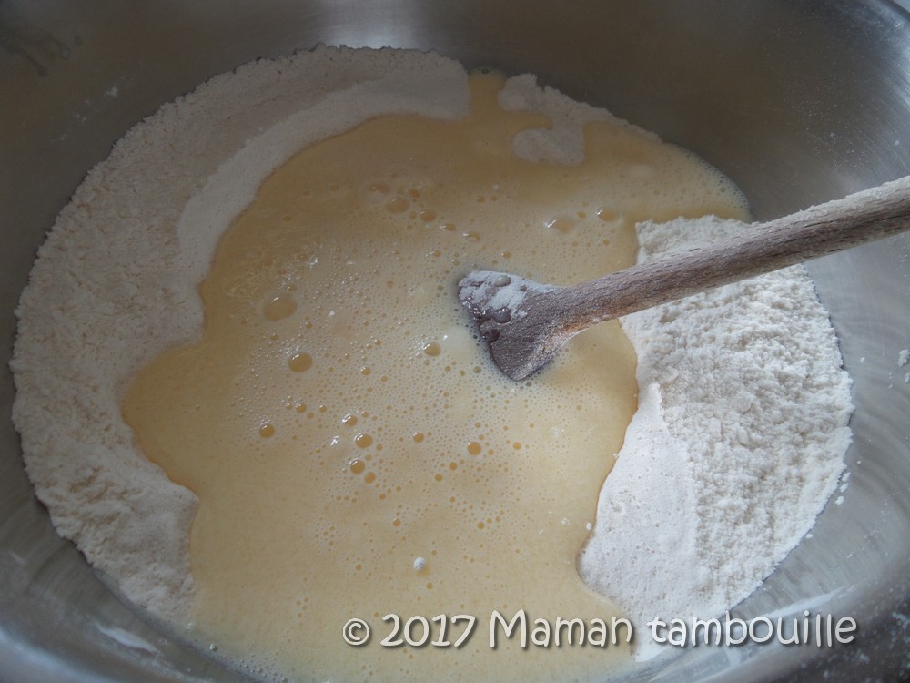 Verser le liquide dans la farine.