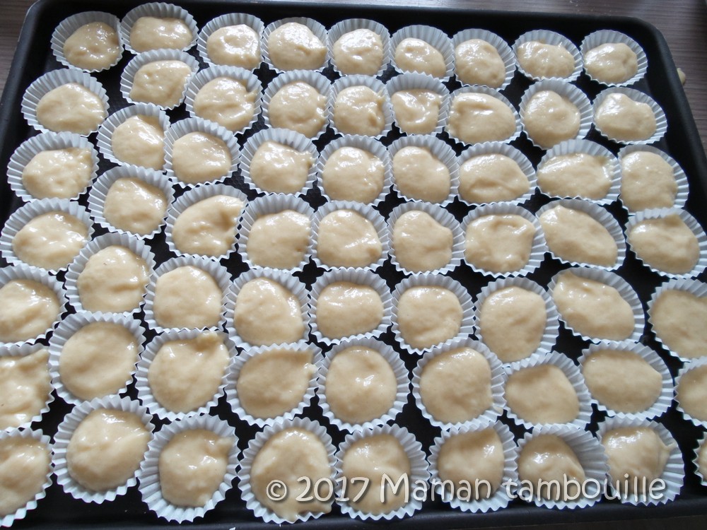 Déposer une cuillère à café de pâte dans chaque caissette.