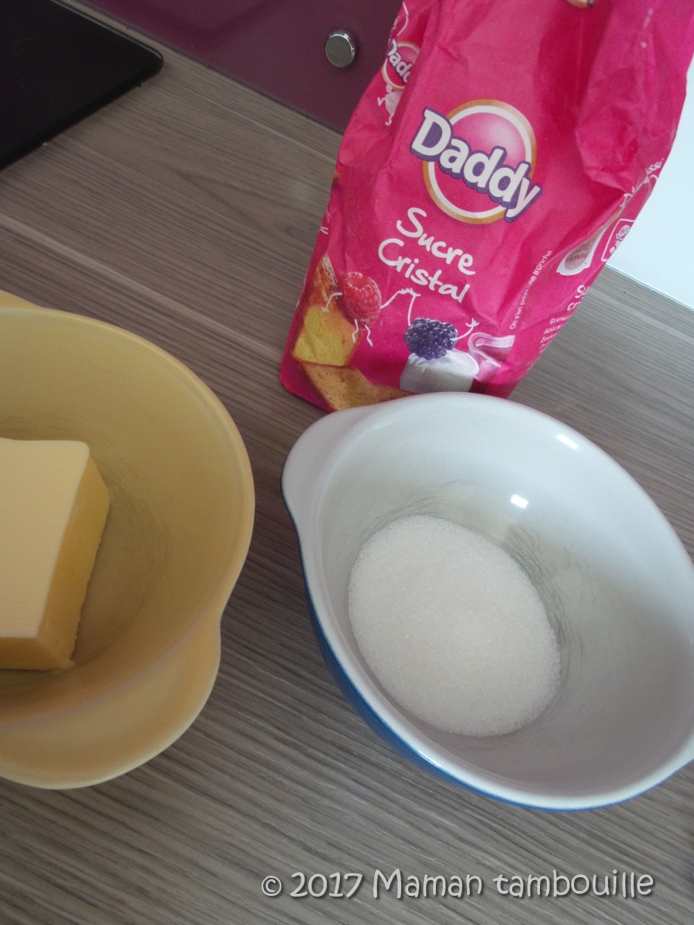 - du sucre (sucre cristal de préférence, sinon du sucre en poudre)