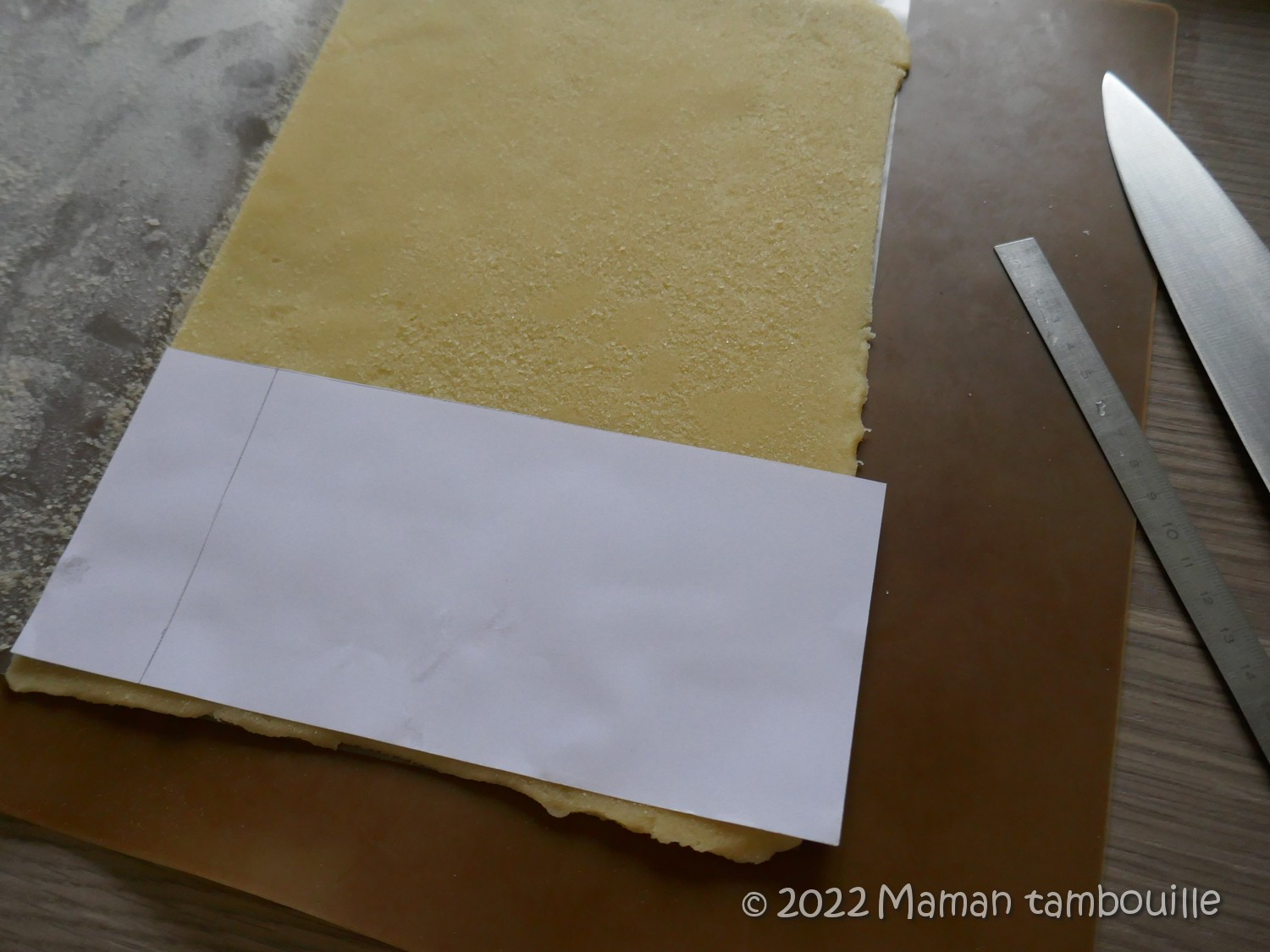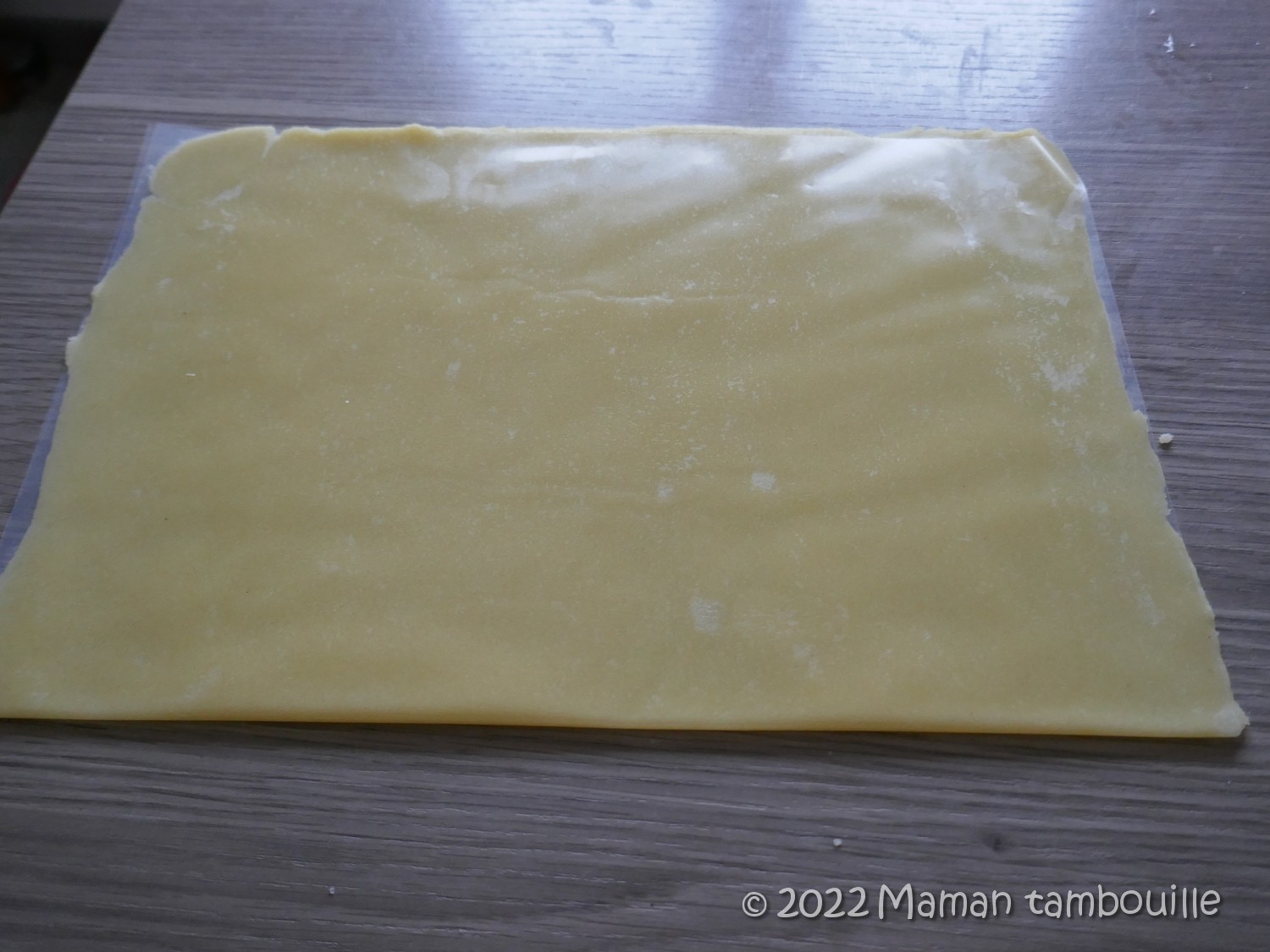 Etaler très finement (2 mm) entre 2 feuilles de papier guitare.