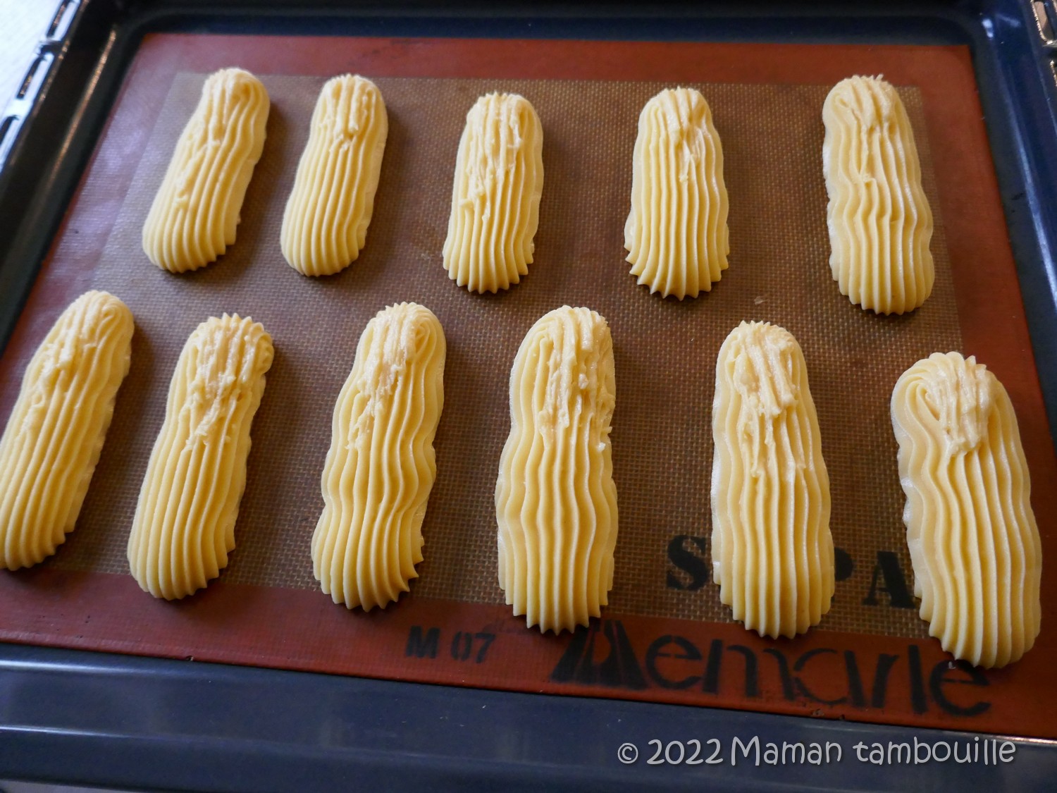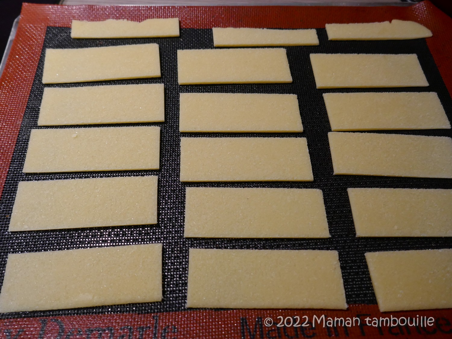 Poser les rectangles sur une plaque de cuisson (une toile silpain pour moi pour avoir l’effet « petits pics » une fois cuits).