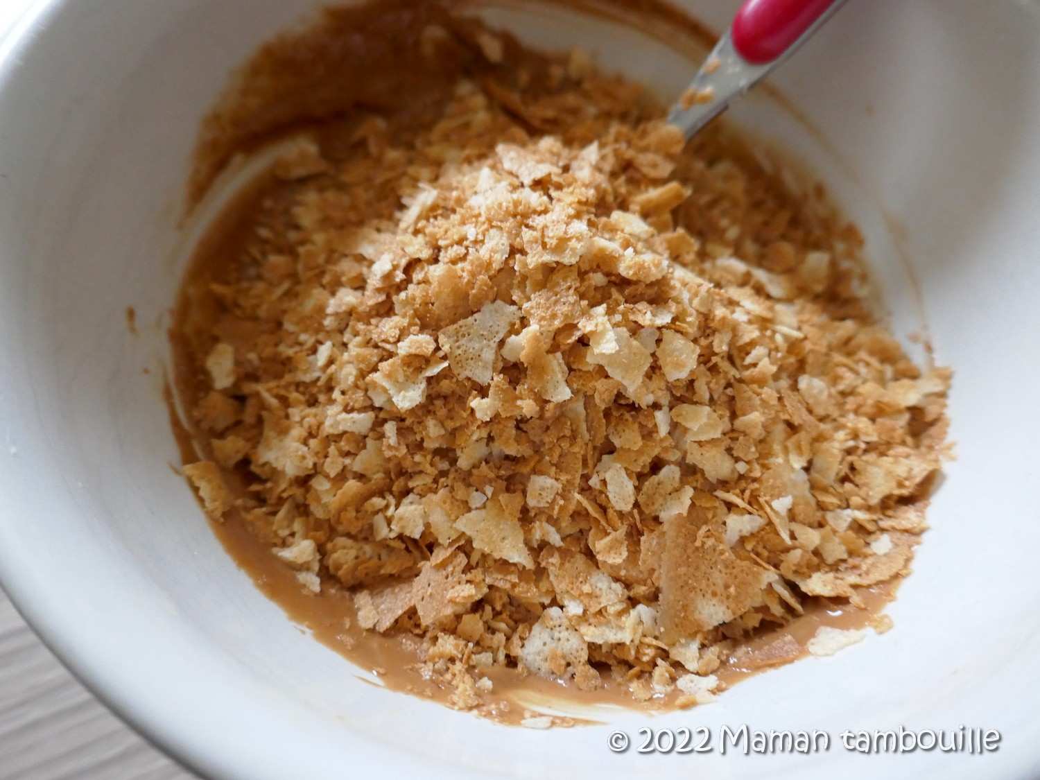 Si c’est trop liquide, rajouter quelques crêpes dentelles.