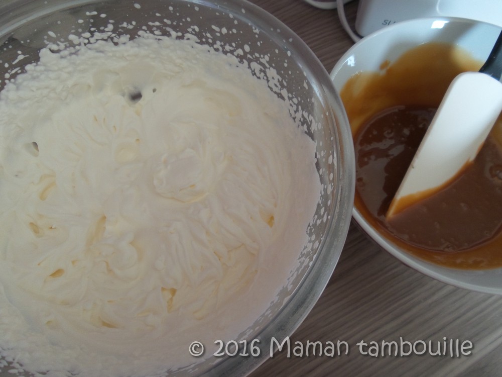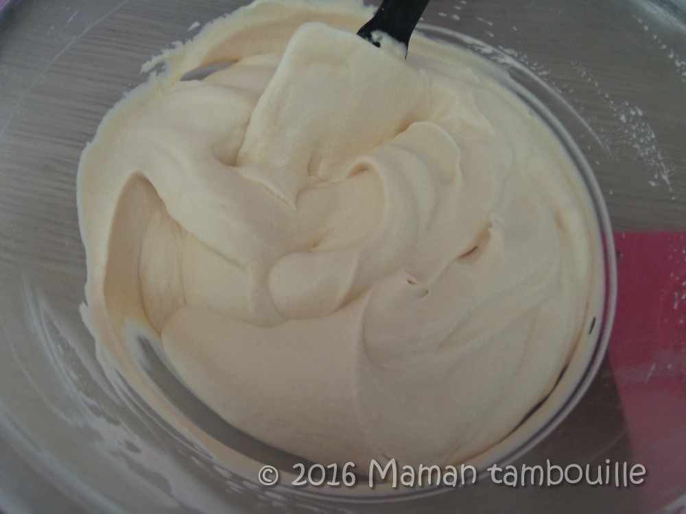 Battre la crème bien froide en chantilly, à vitesse lente d’abord puis en montant la vitesse. La crème doit être bien ferme.