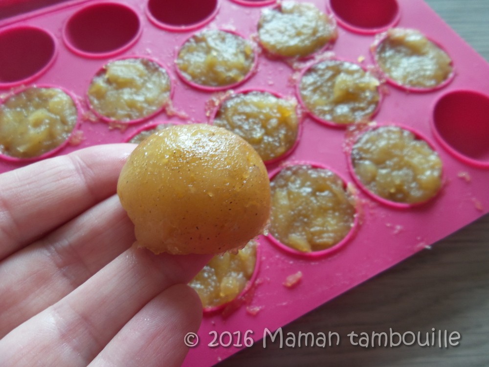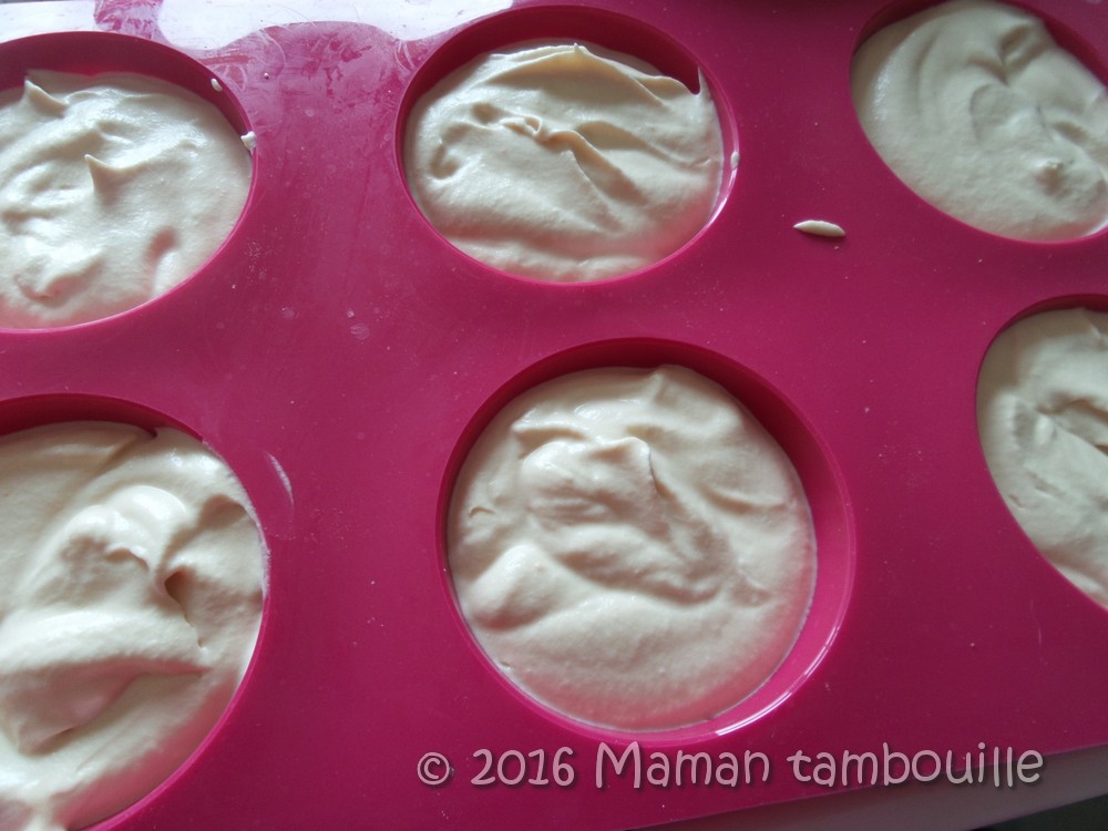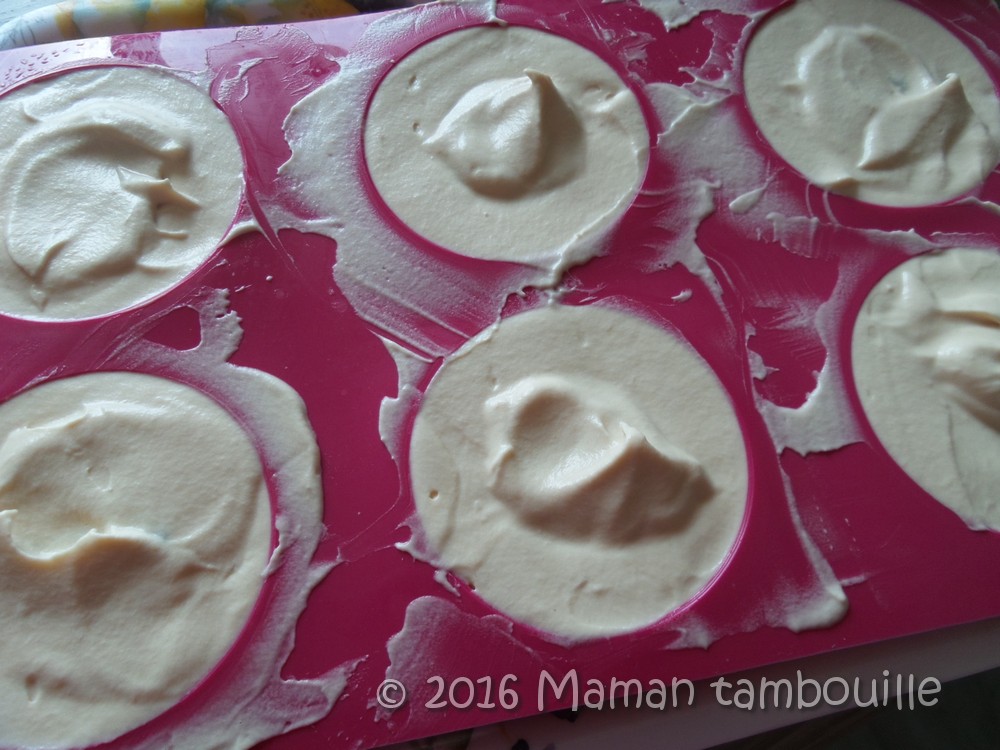 Remplir des minis moules demi sphères et mettre au congélateur 30min.