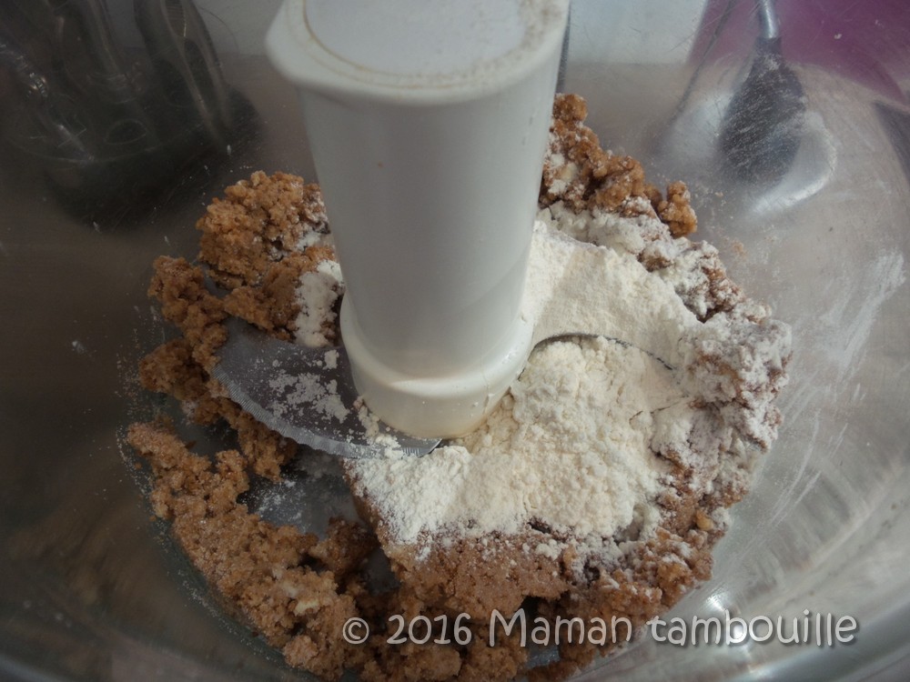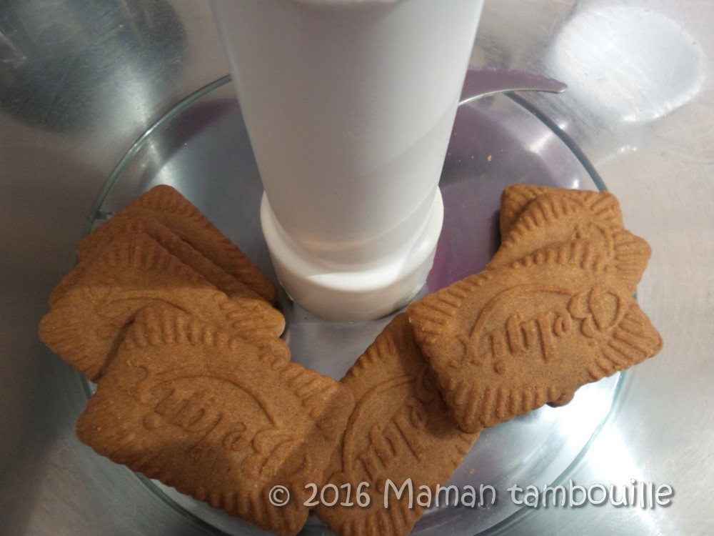 Dans le bol d’un robot mixeur, mettre les speculoos.