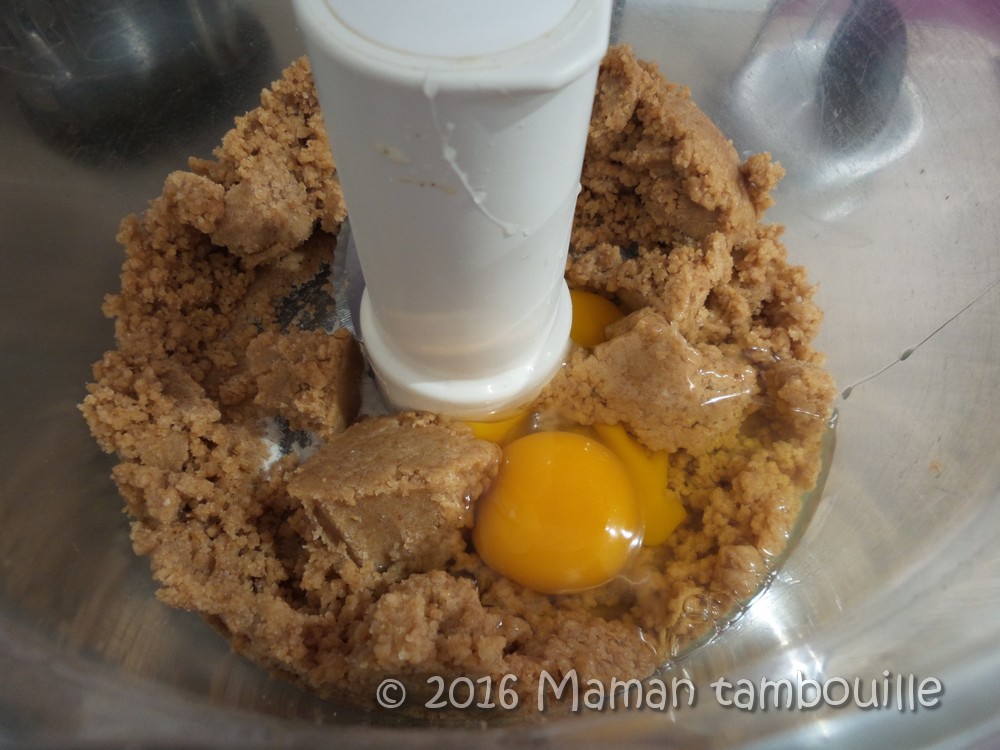Mixer puis ajouter les œufs. Mixer jusqu’à obtenir une pâte lisse.