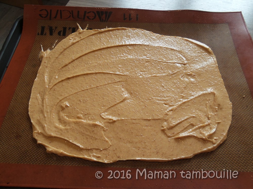 Etaler la pâte sur une plaque de cuisson sur 2-3mm d’épaisseur.