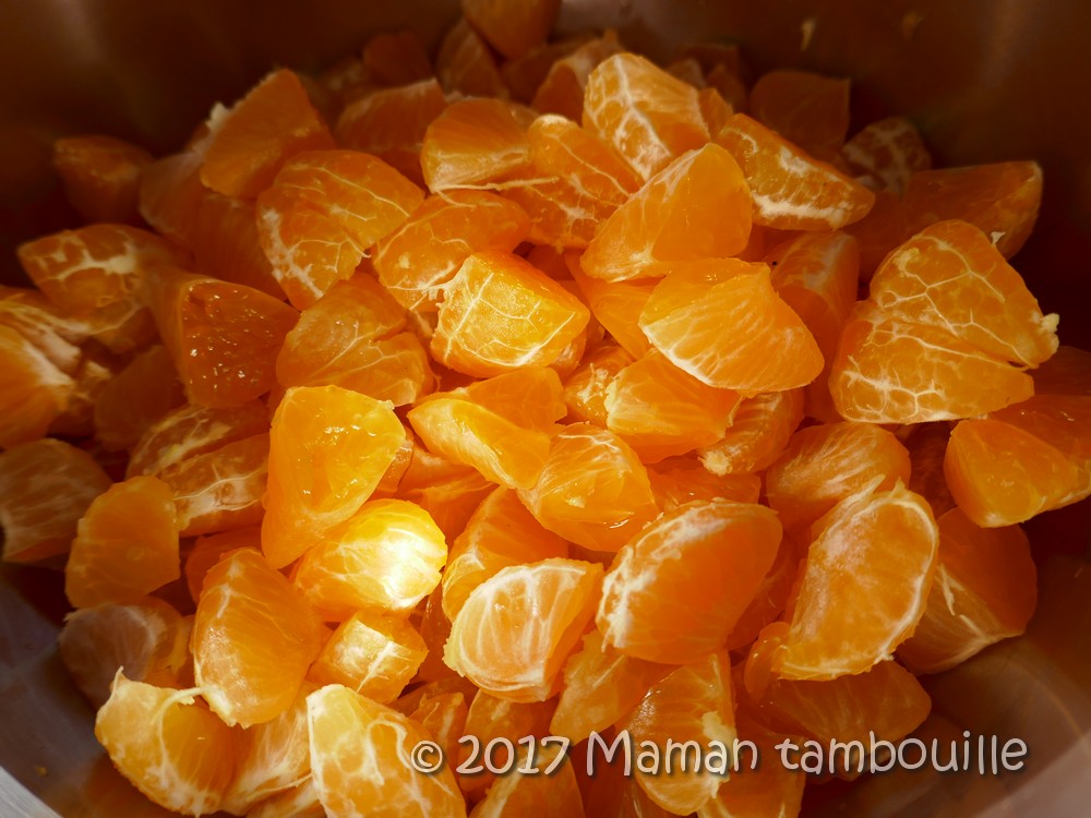 - 550 g de clémentines épluchées et épépinées (on les pèse une fois épluchées et on retire au maximum les peaux blanches.)