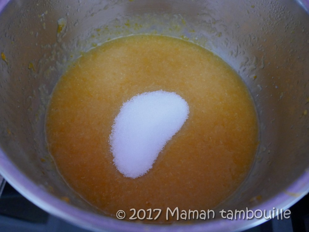 - Note: la recette originale indique aussi 3 g de pectine+25 g de sucre. Je n’avais pas de pectine alors je n’en ai pas mis.
