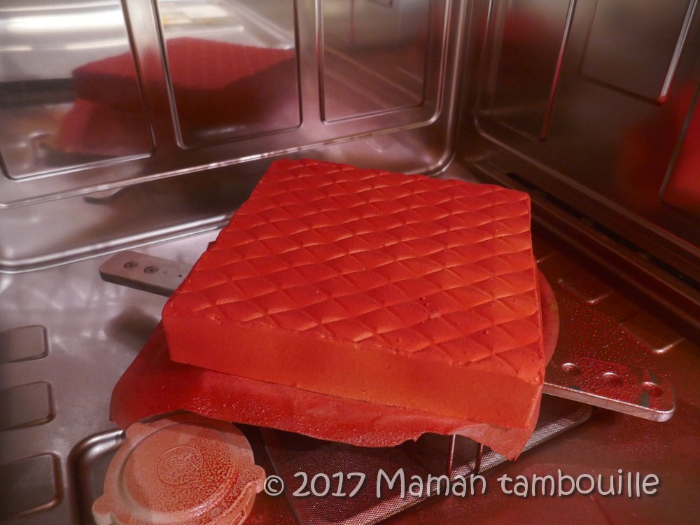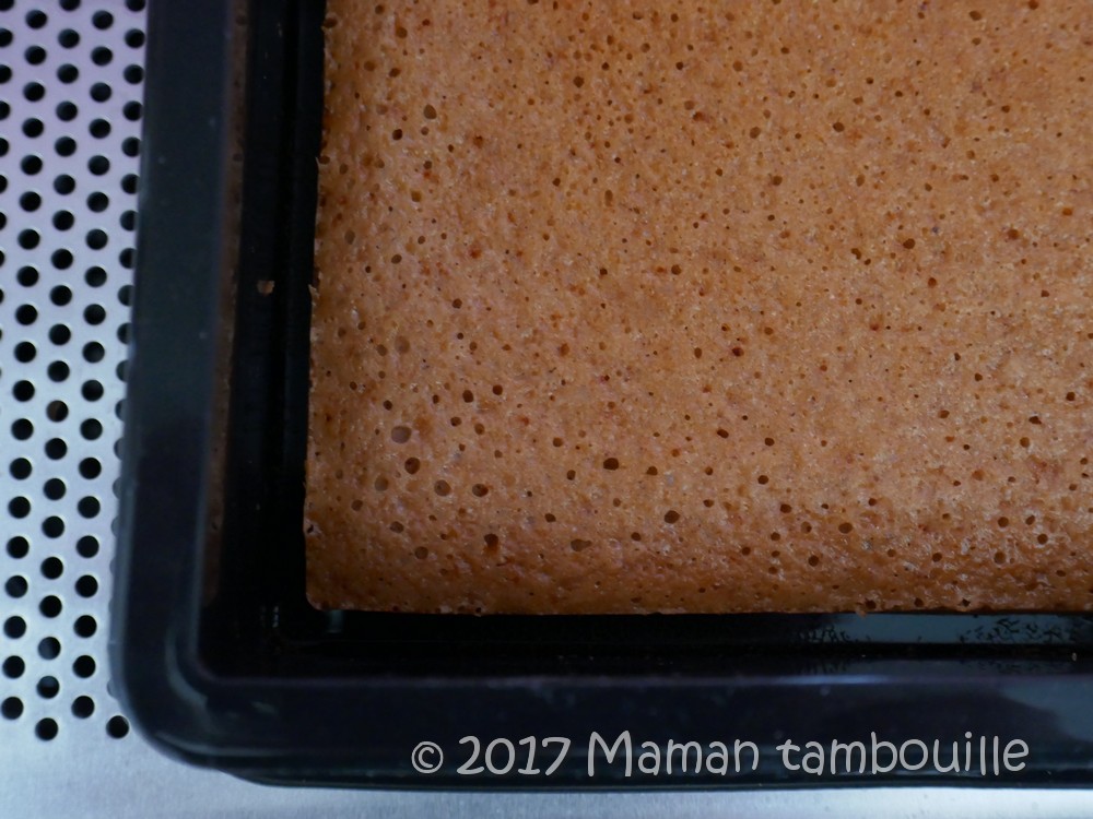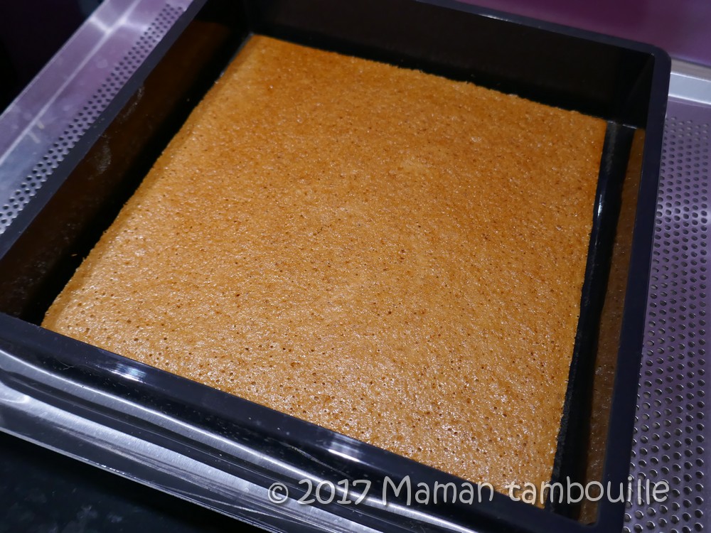 Dans mon moule, le gâteau s’est rétracté de manière uniforme (on le voit sur la photo). C’est parfait car je n’ai pas eu besoin de recouper le gâteau pour l’insérer dans la mousse plus tard.