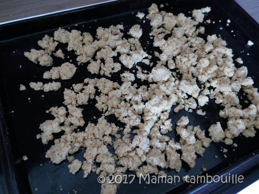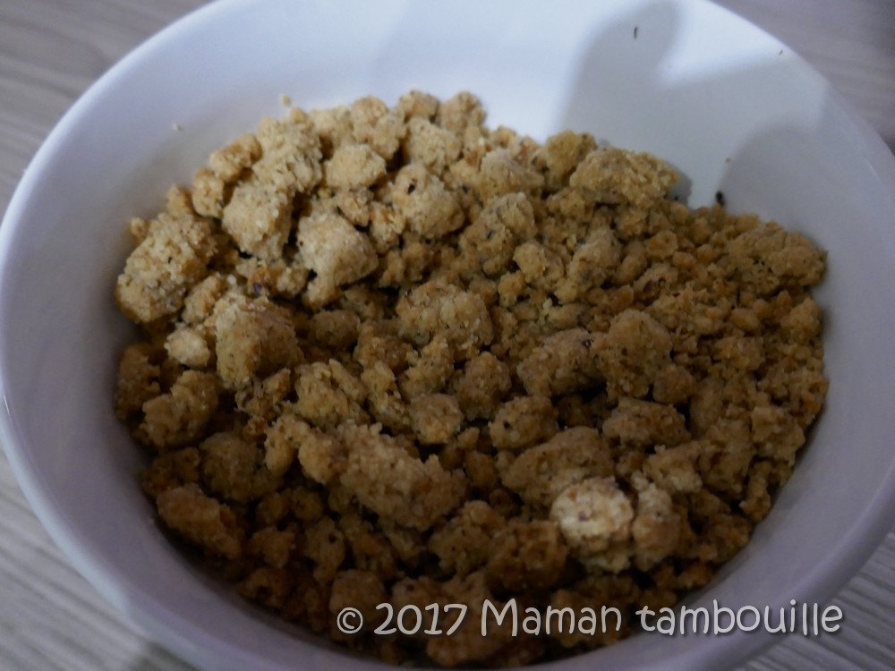 3-Préparation du streusel (vous ferez un streusel un peu plus fin que moi car les gros morceaux ne seront pas faciles à intégrer dans le moule 3D sinon).