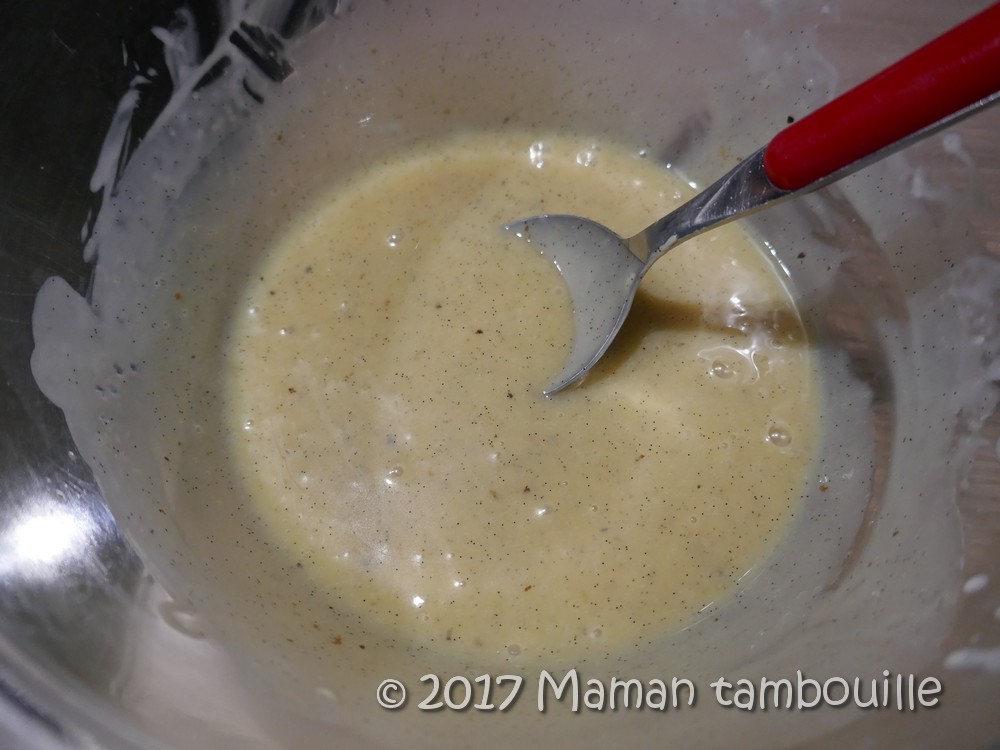 Verser le liquide au fur et à mesure dans la farine en fouettant au batteur.