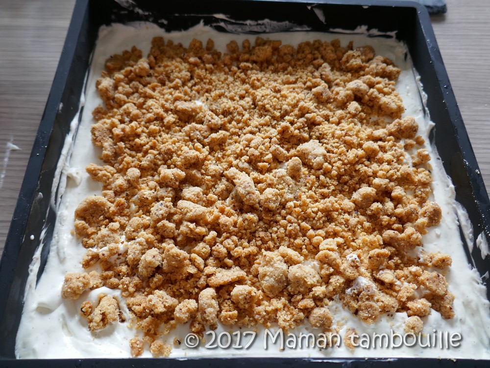 Répartir le streusel sur la crème sans en mettre sur les bords.