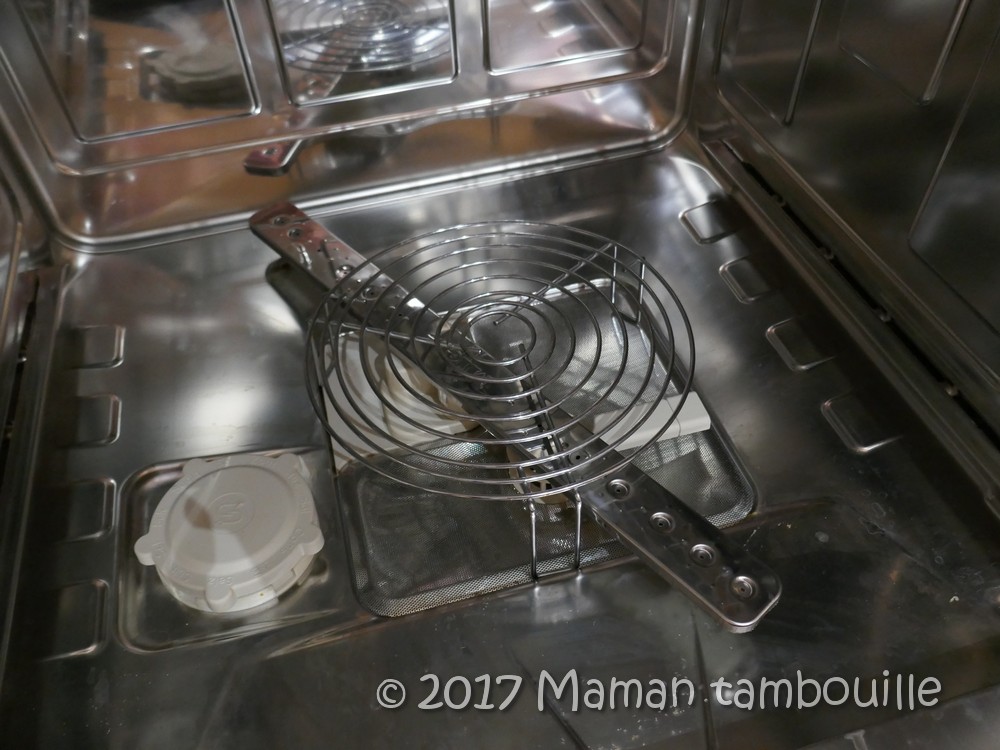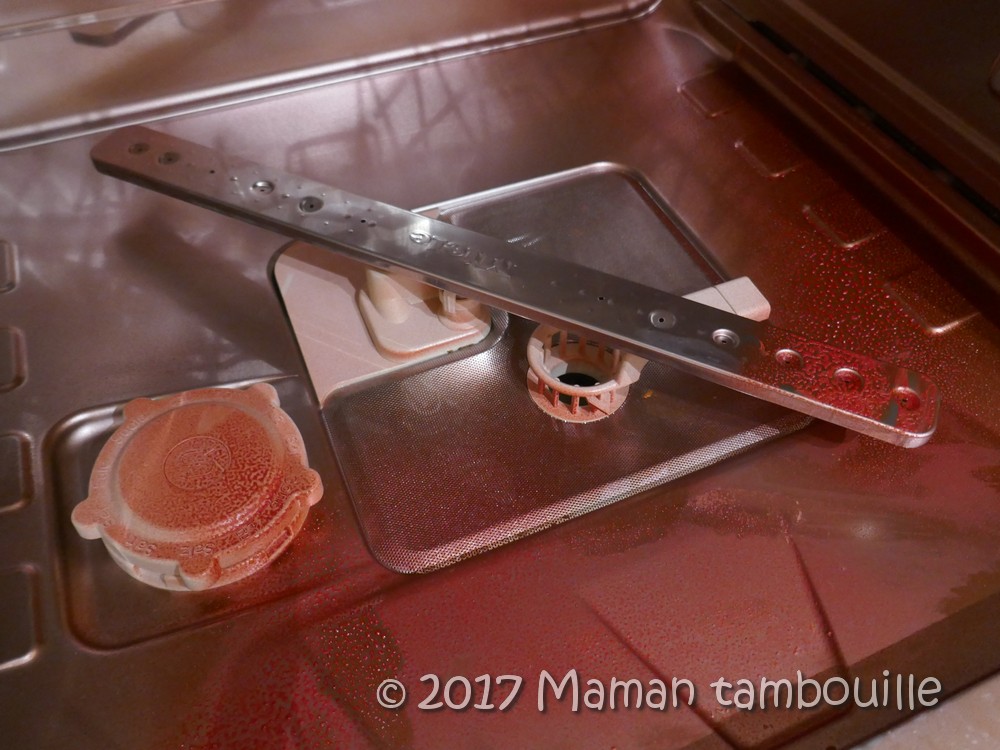 Et voilà le fond du lave vaisselle, les enfants, qui ne m’avaient pas vu « bomber » le gâteau ont cru que j’avais éventré un cochon dans le lave vaisselle 😉