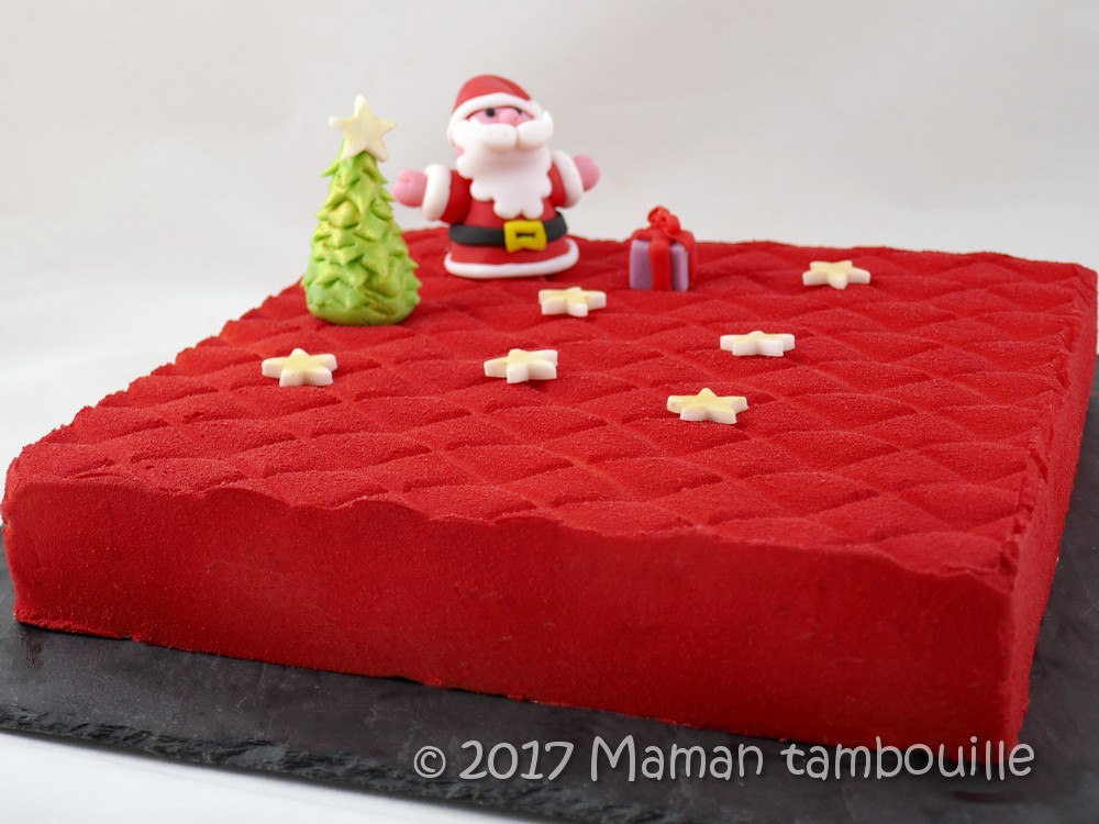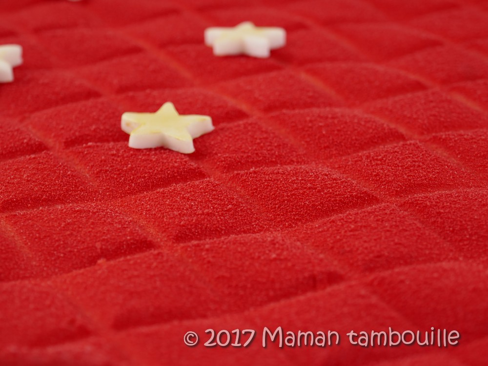 Certains attendaient avec impatience la publication de mon dessert de Noël et le voici enfin ! Cette année, je n’ai pas fait de bûche car je voulais tester mon nouveau moule carré flexipat avec son décor résille de chez Demarle. Mais pas d’inquiétude, si vous préférez, vous pouvez bien sûr le faire sous forme de bûche !