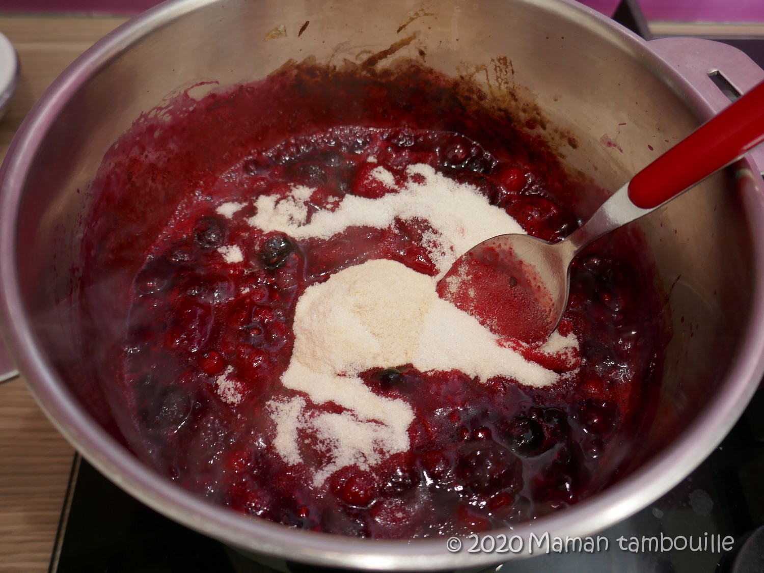 • 360g de fruits rouges (j’ai pris un mélange surgelé de framboises, mûres, myrtilles, groseilles)