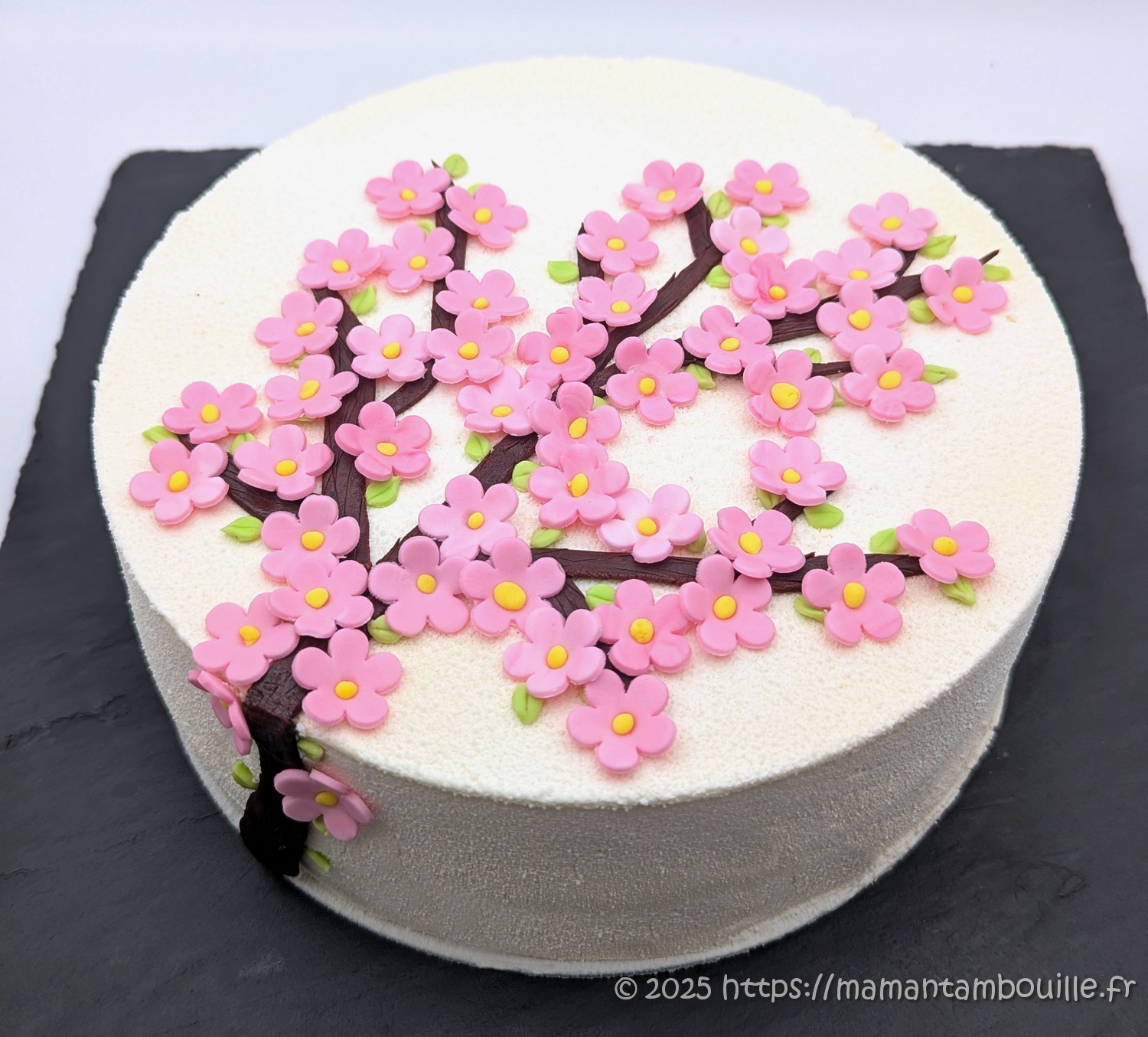 J’ai tellement de gâteaux de retard à publier, les photos et recettes en attente s’accumulent ! Pour rattraper un peu ce retard, je vous propose aujourd’hui mon entremets à la cerise décoré façon sakura réalisé aux beaux jours dernier pour l’anniversaire de ma puce. Bien évidemment la saison des cerises est passée mais vous pouvez malgré tout le réaliser avec des cerises surgelées 😉