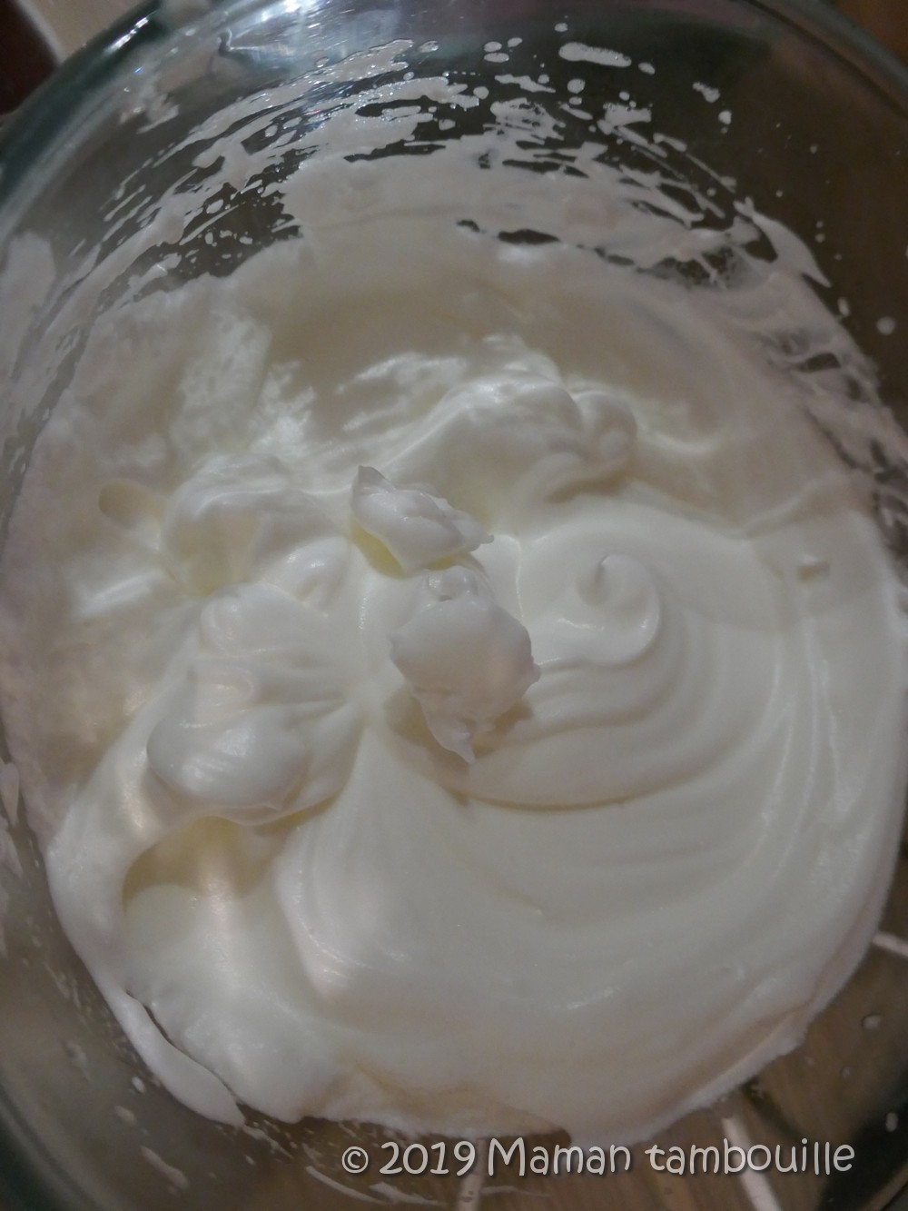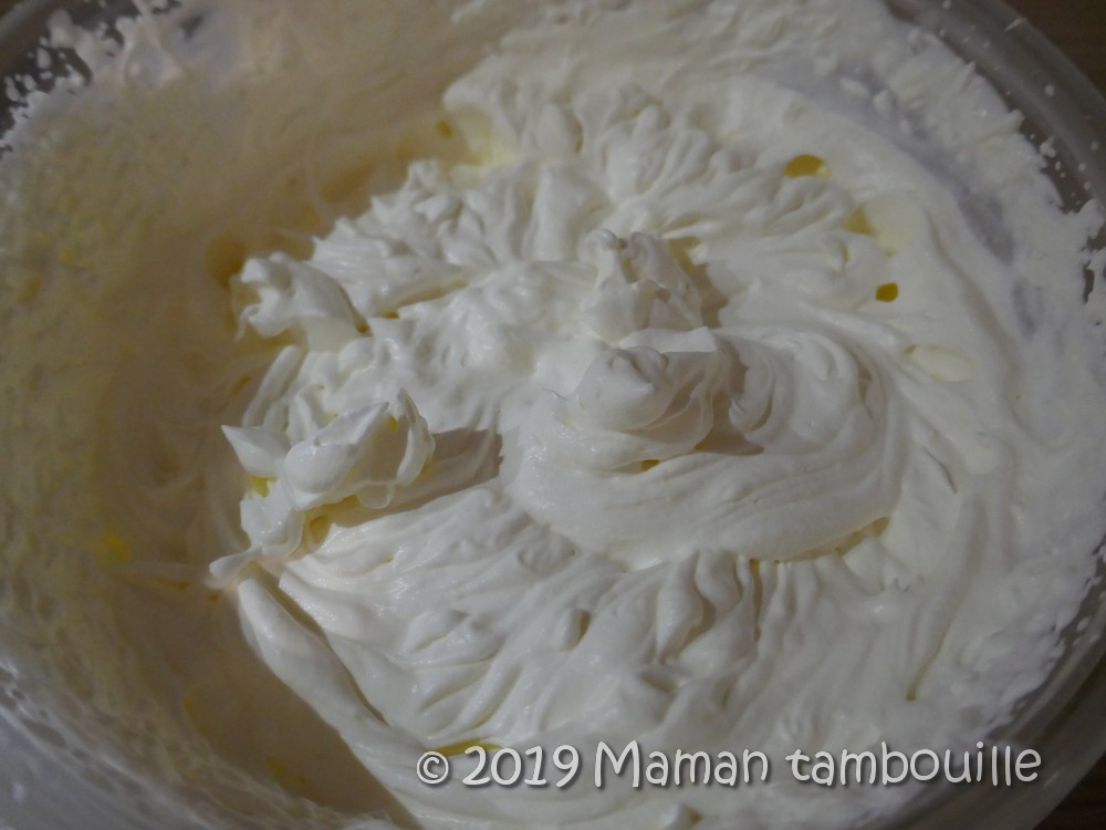 Incorporer la crème fouettée au mélange mascarpone en plusieurs fois.