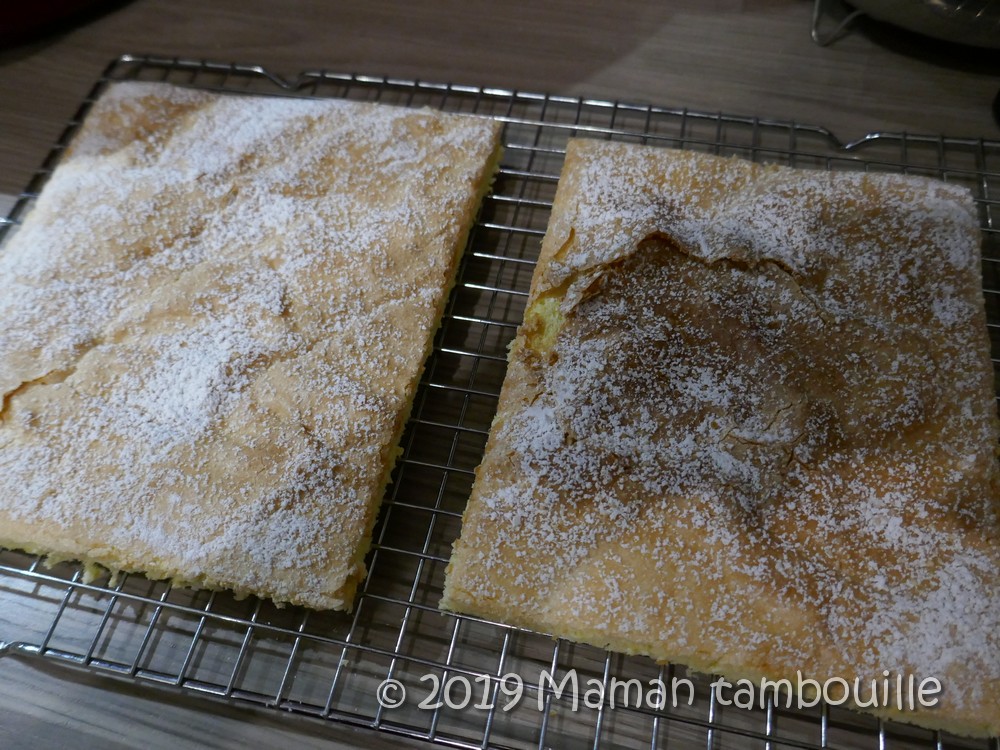 J’ai saupoudré le gâteau puis j’ai retiré doucement les papiers cuisson.