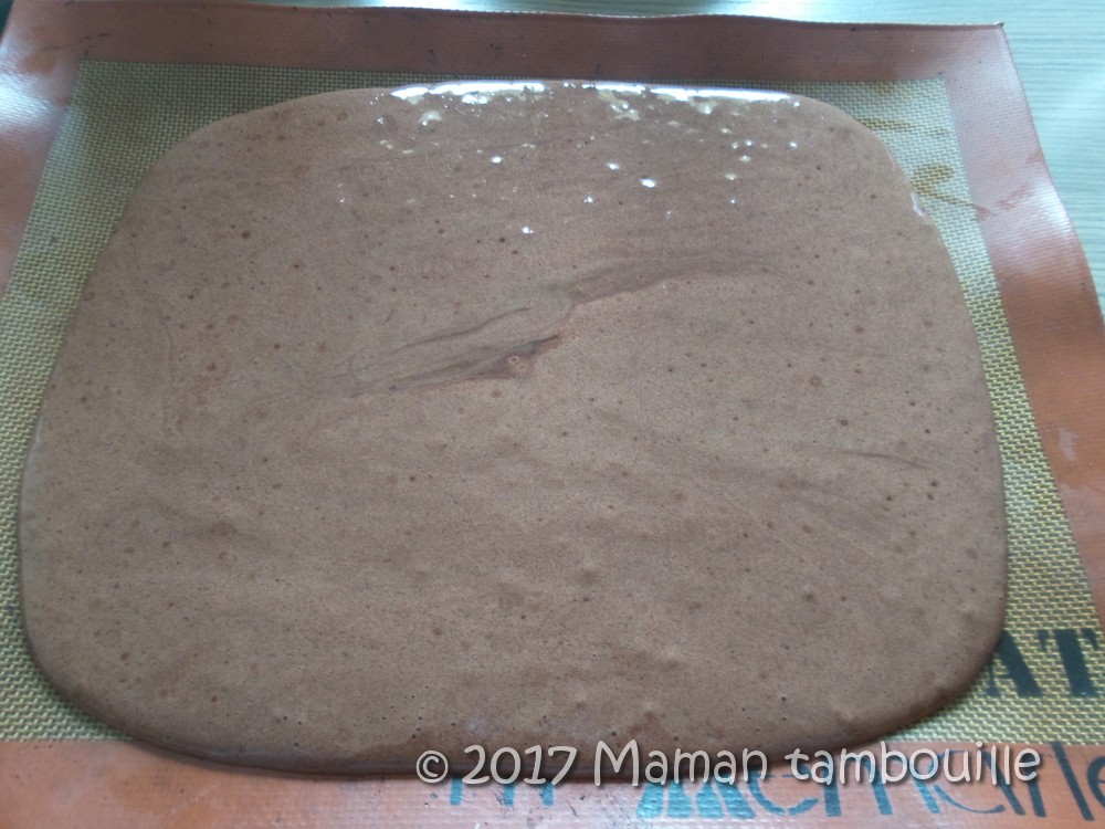 Verser la pâte sur une toile silpat ou une plaque couverte de papier cuisson.