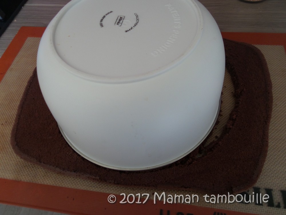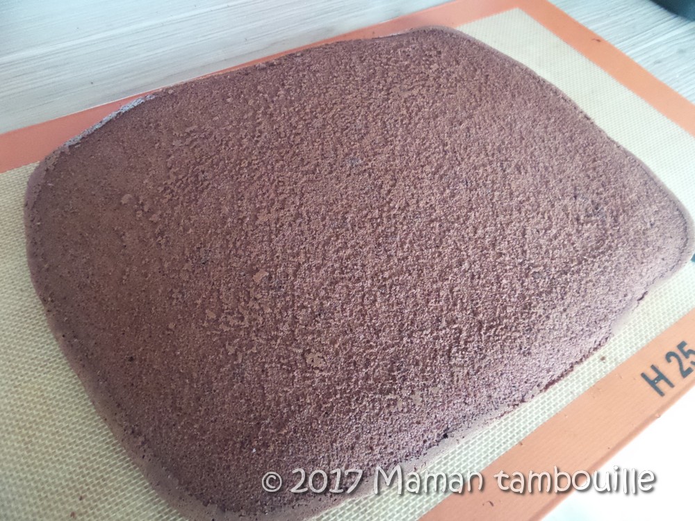 Faire fondre 30g de chocolat noir et verser sur la génoise. Etaler au pinceau sur toute la surface.