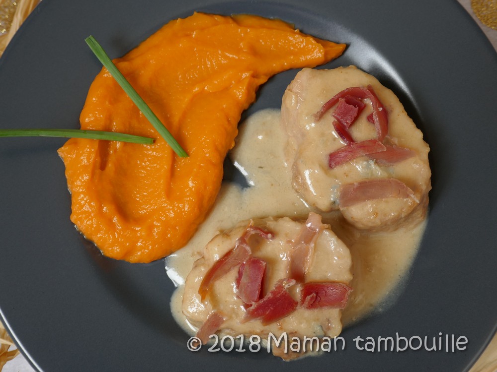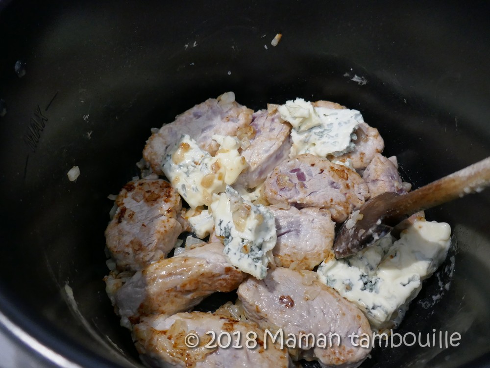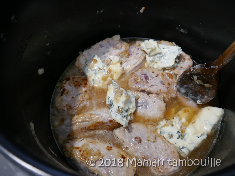 Bon, sinon, pour le plat, j’ai choisi de faire un filet mignon au gorgonzola. C’est simple et rapide, par contre, je préviens tout de suite que ça cocotte quand même beaucoup dans la maison pendant la cuisson (et surtout à l’ouverture du cookeo !). Mon gorgonzola était probablement plus fort que d’autres alors ça c’est évidemment ressenti au goût 😉 . Si vous voulez une saveur plus douce, vous pouvez réduire la quantité de gorgonzola. Ici, malgré l’odeur puissante, on a trouvé ce plat très bon, même les loulous ont adoré la sauce. J’ai choisi d’accompagner le tout d’une purée de patate douce (que j’ai cuites évidemment au cookeo !).