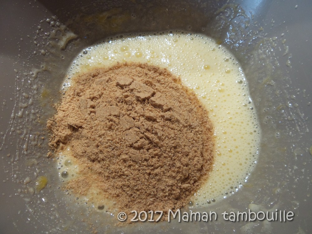 Ajouter la poudre de biscuits dans le saladier.