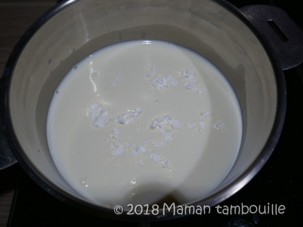 Mettre le lait dans une petite casserole avec la maizena et le sucre. Mélanger.