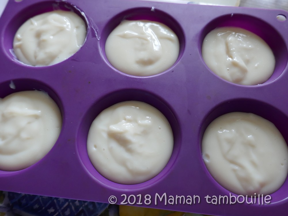 Mélanger la crème puis verser dans des petits moules en silicone.