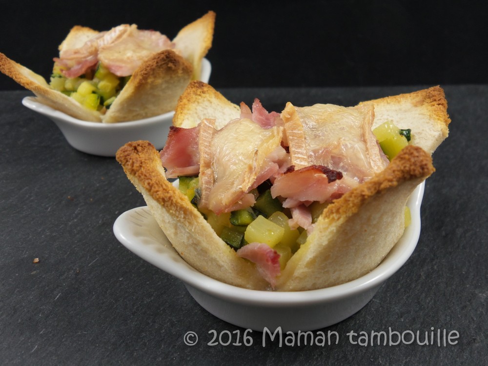 De jolies petites fleurs de pain de mie garnies de courgettes, de jambon et de fromage fondants, ça vous tente ? Et bien voici le plat que j’ai imaginé un soir avec ce que j’avais sous la main: du pain de mie, des courgettes, du jambon et du délicieux fromage carré du vinage reçu dans la box La boite du fromager.