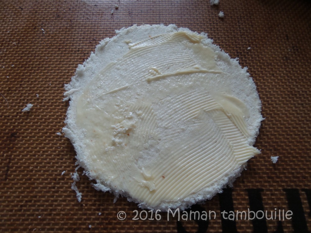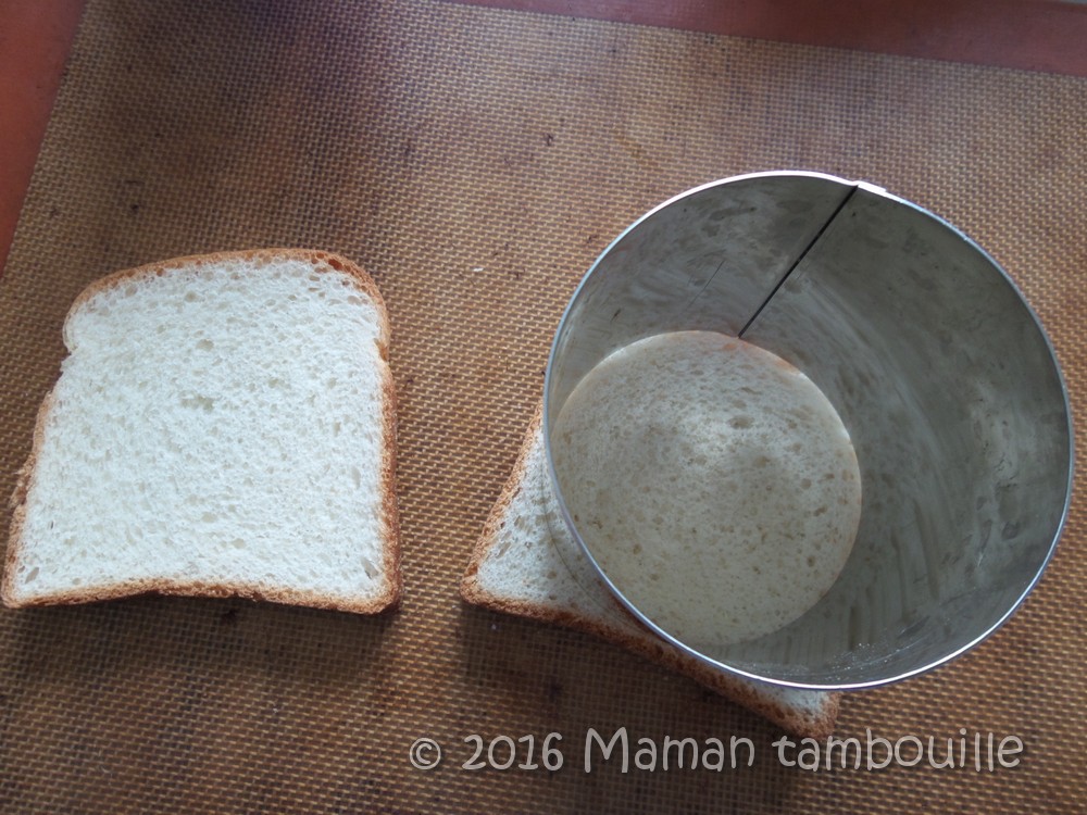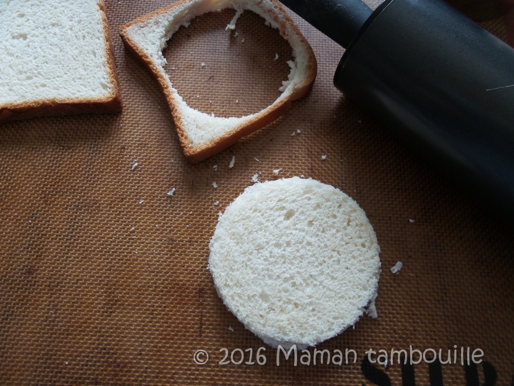 Avec un emporte pièce rond, couper des ronds de pain de mie.