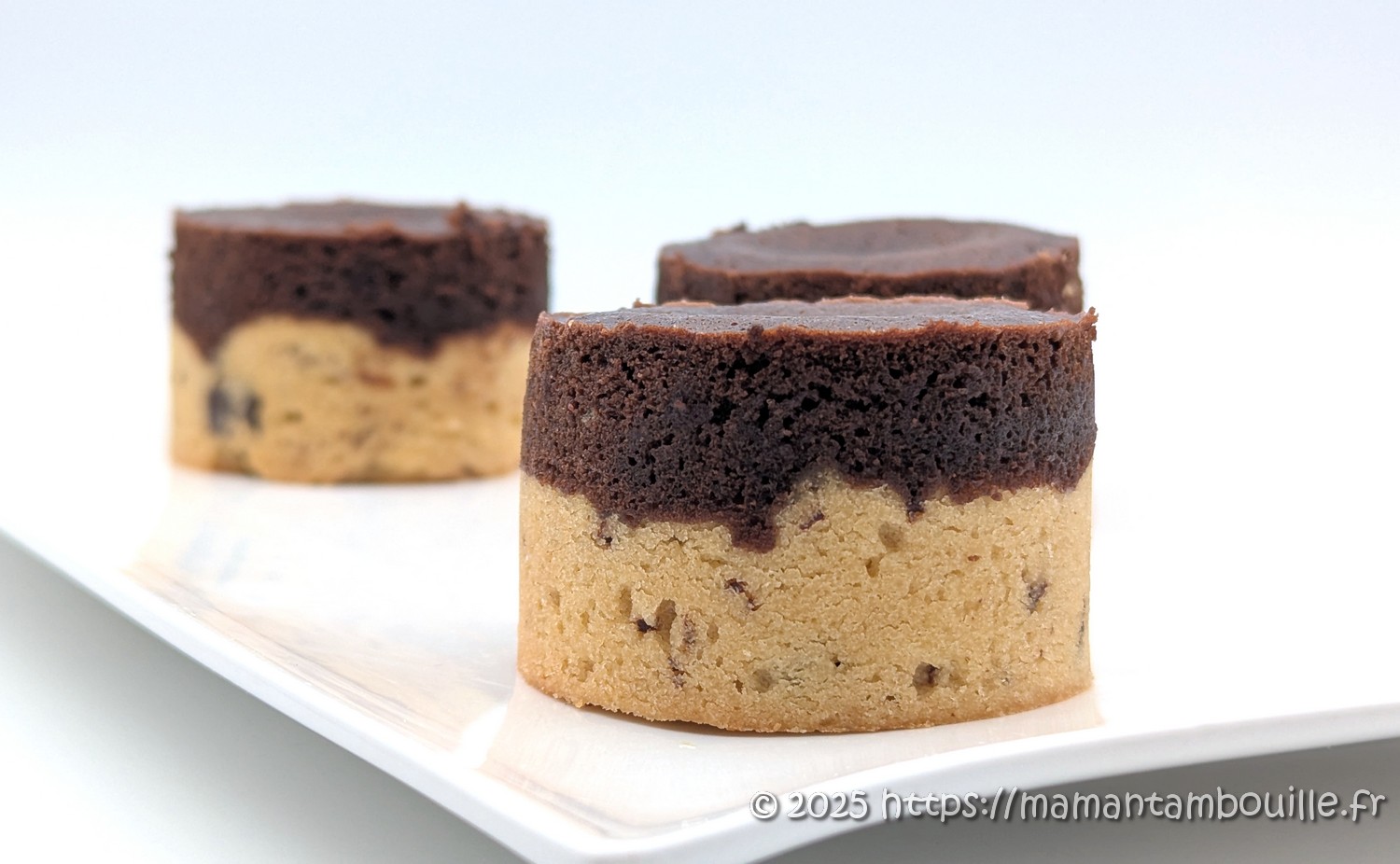 Enfourner 6 min à 200°, pas une minute de plus si on les veut bien coulants ! Pour les versions bouchées, plus petites, ne cuire que 5 min. Sortir du four et laisser tiédir 30 minutes avant de démouler. Servir encore tiède. Si vous les préparez avant, réchauffer 20 secondes au micro ondes avant de servir.