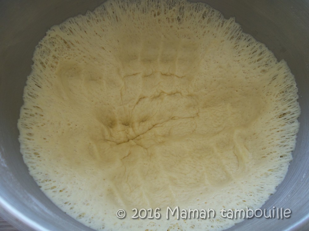 Couvrir d’un torchon et laisser lever 1h30. La pâte doit doubler de volume.