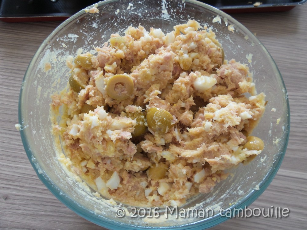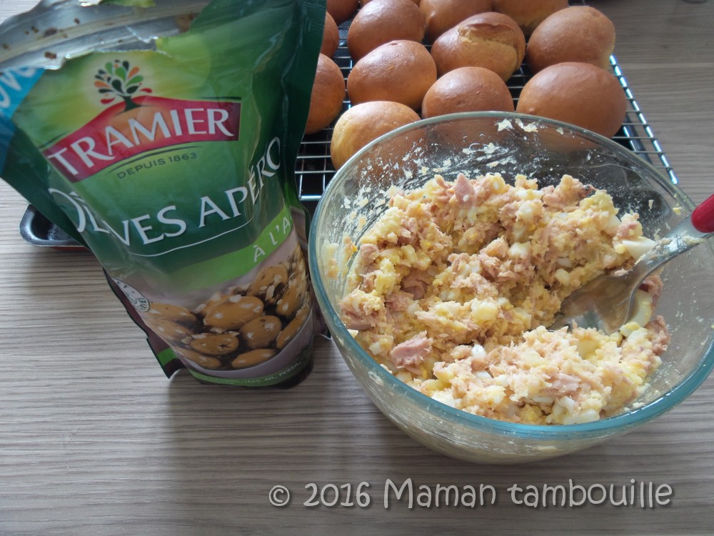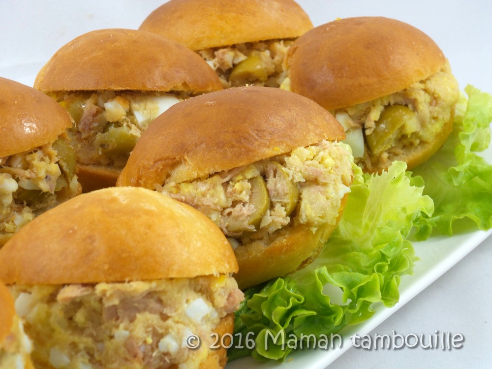 Une jolie découverte ces fricassés tunisiens, des petits pains farcis de thon, œuf, et olives. Normalement, ces pains sont cuits à la friteuse mais je n’étais pas tenté par une friture alors j’ai choisi de les cuire au four. J’ai fait un mix de différentes recettes trouvées sur le net et j’ai trouvé ça bien sympa.