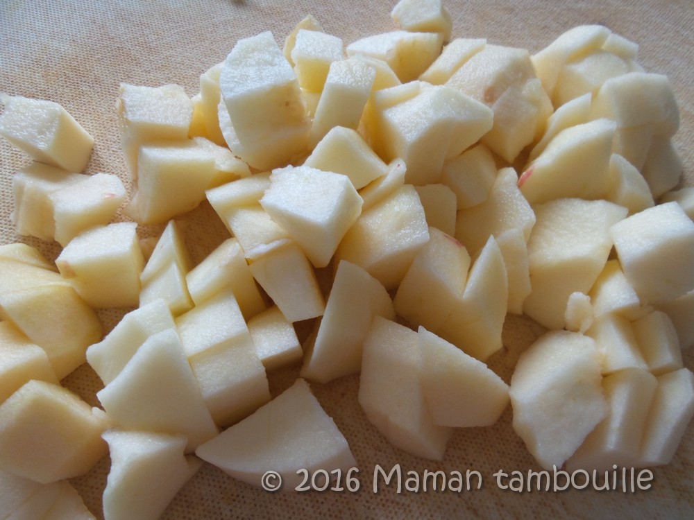 Quand les pommes sont fondantes (mais pas en purée), les mettre sur une assiette et laisser refroidir.