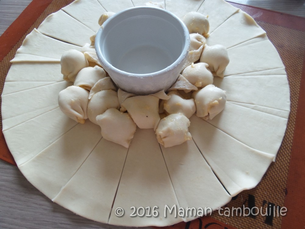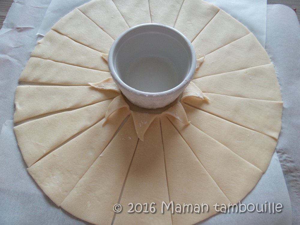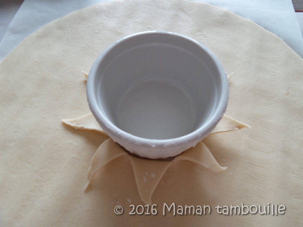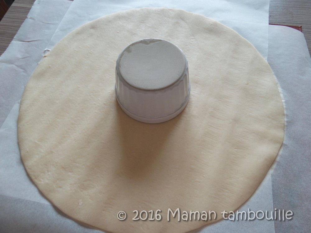 Retirer le ramequin et poser la 2ème pâte feuilletée sur la 1ère.