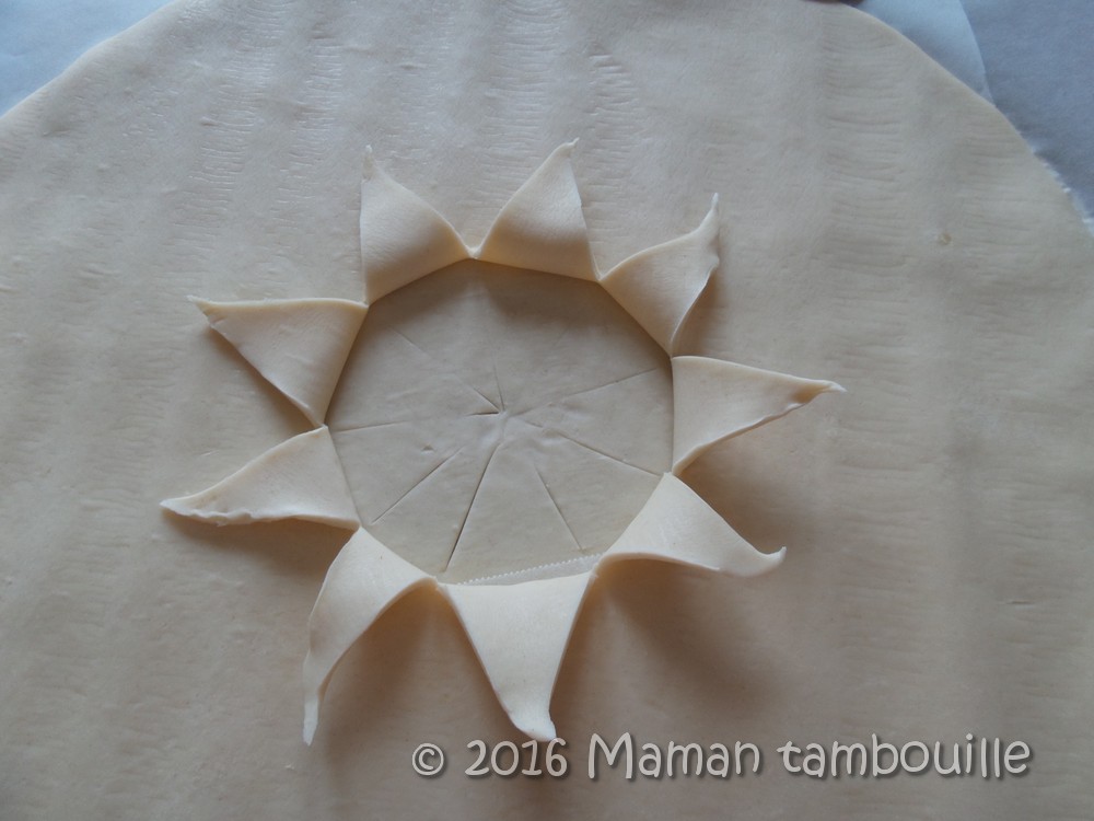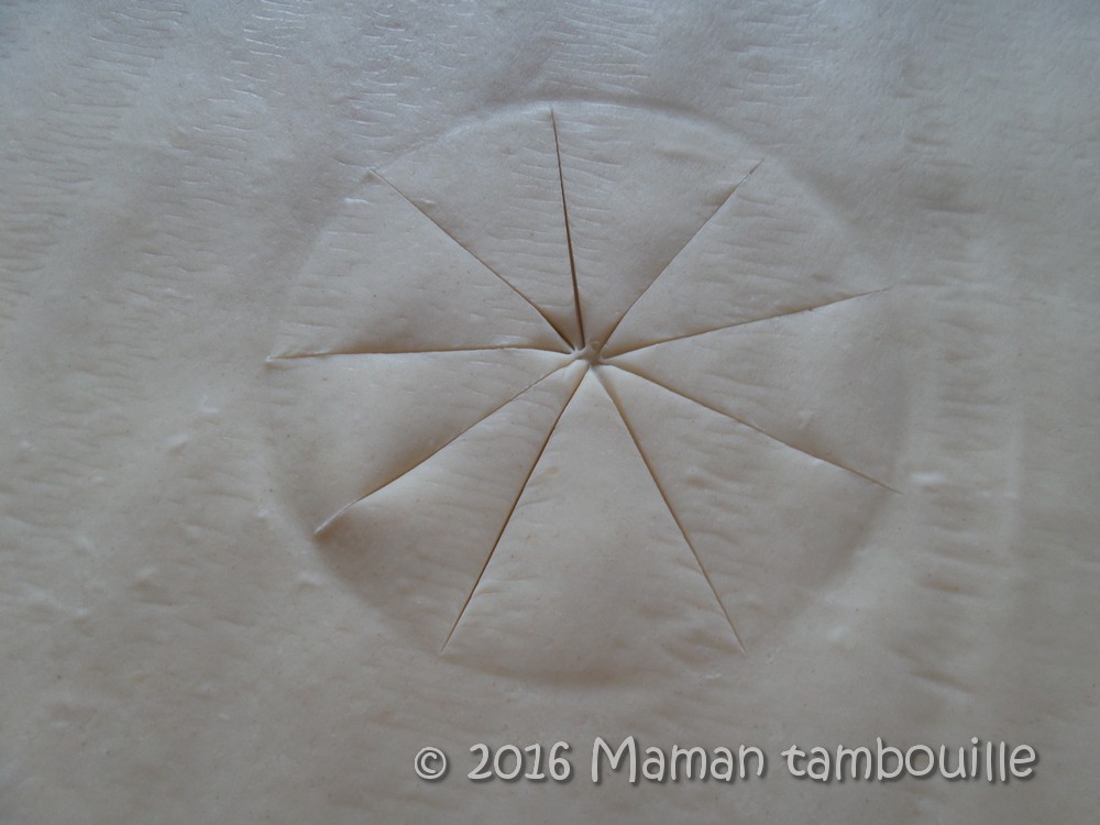 Couper des triangles sur la pâte du dessus jusqu’à la marque.