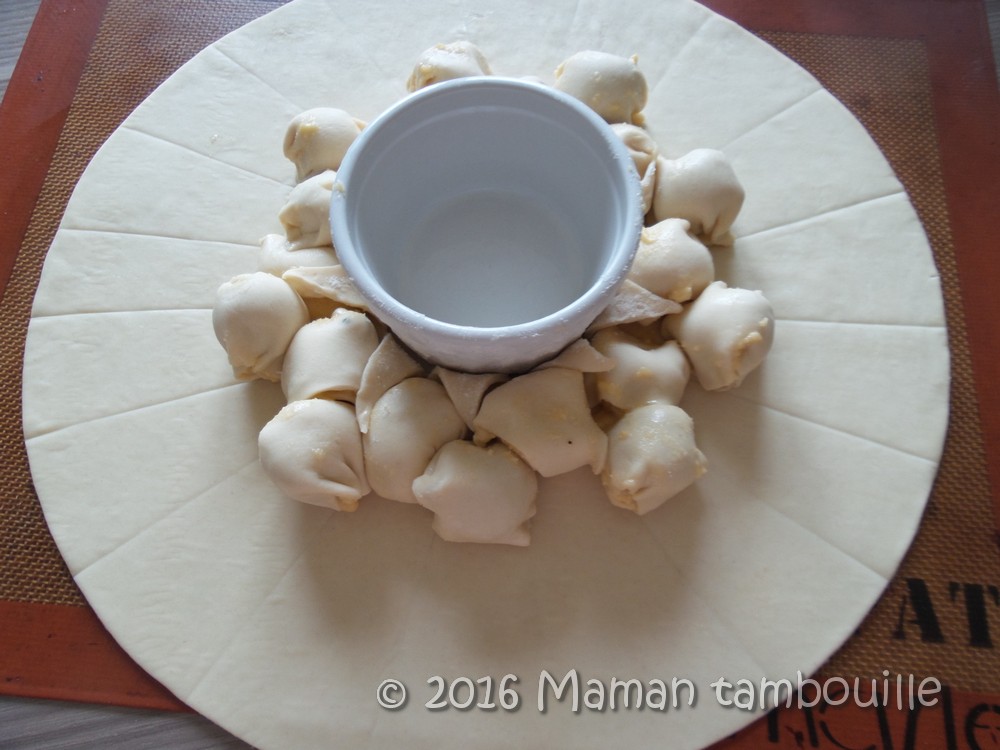 Poser le ramequin au milieu à l’envers et appuyer un peu pour former une marque.