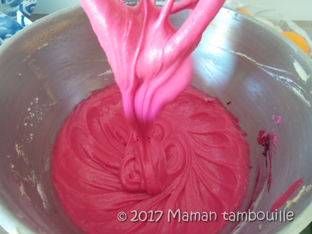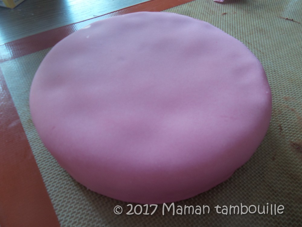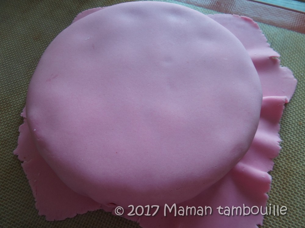 Faire la même chose avec la pâte rose sur le petit gâteau.