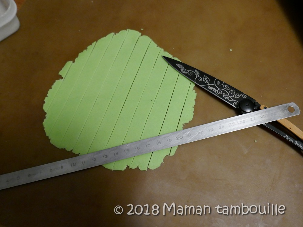 Quelques jours avant, préparer les carrés de couleur. J’ai utilisé une réglette de 1cm de large pour avoir des carrés réguliers.